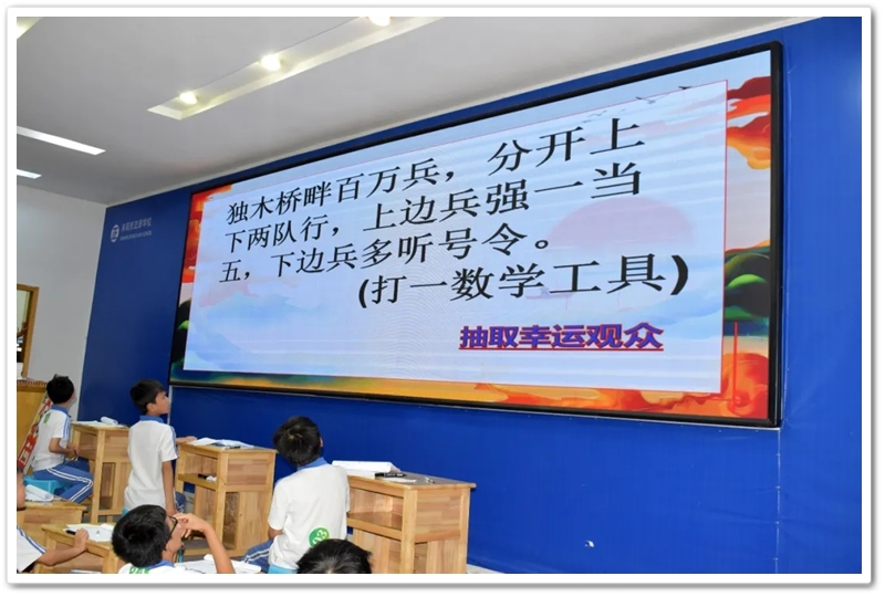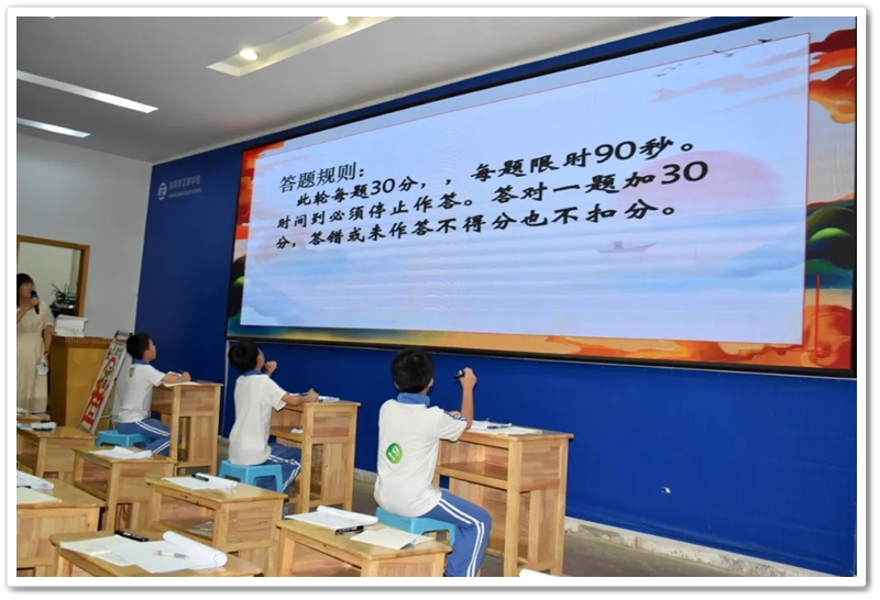 短暂的放松后,紧接着的是“大显身手”环节,本轮共10题,限时1分钟。难度较上一环节有了显著提升。此环节的题目将数学教科书上的思考题与实际生活相融合,考察选手们的综合运用能力。面对复杂的数学问题,选手们或沉思默想,或奋笔疾书,展现了深厚的数学素养和解决问题的能力。最终,395班的陈就和欧阳逸轩同学两位同学,将395班的曾子睿和398班的郑沐帆挑落,和398班的李涛锋同学组成新的前三名,赢得了现场观众的阵阵掌声。此环节结束后,全场同学观看了《张衡与浑天仪》的故事,相信“张衡”精神,一定会鼓舞孩子们以更饱满的热情投入到学习当中!