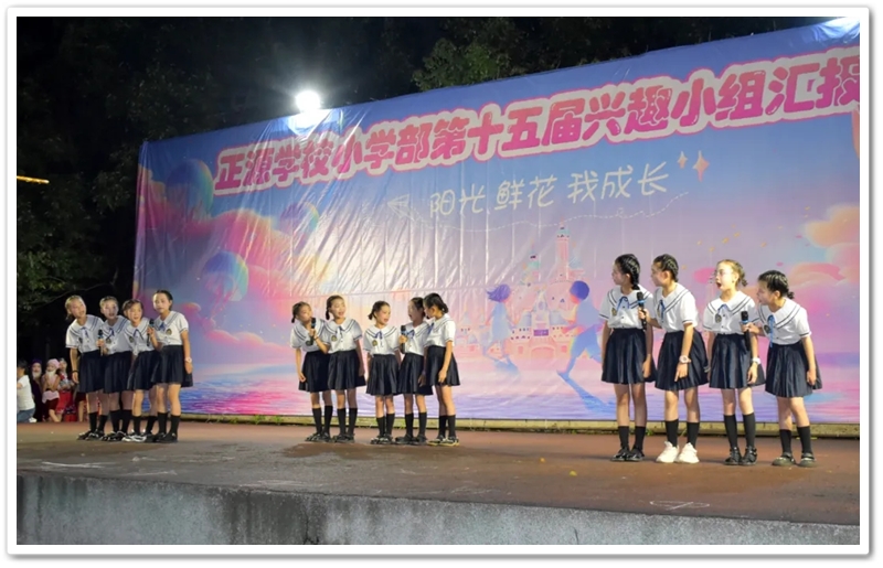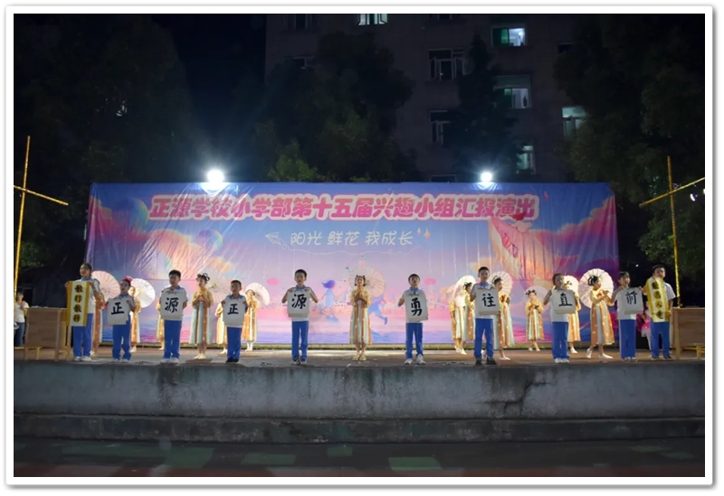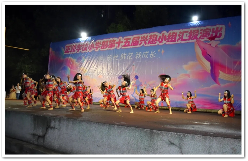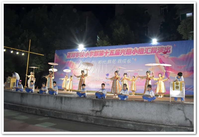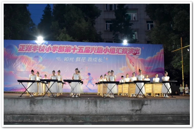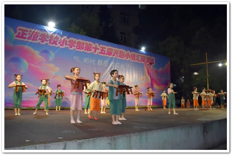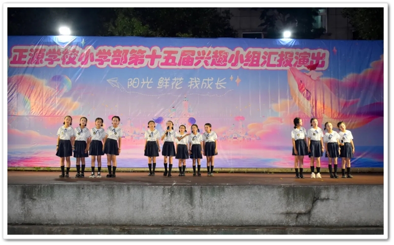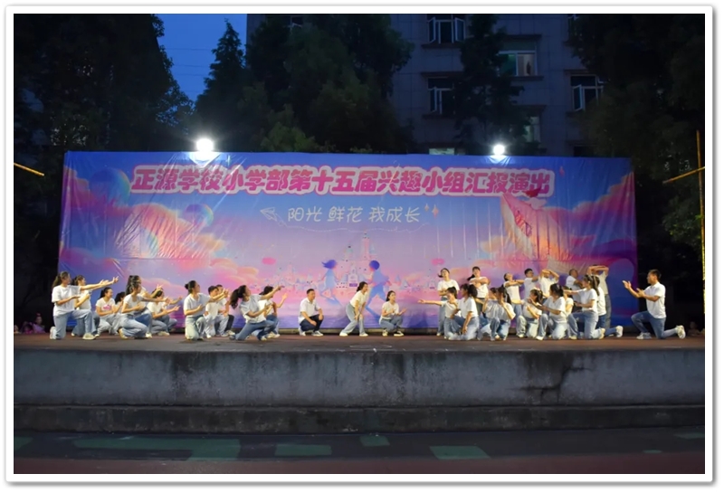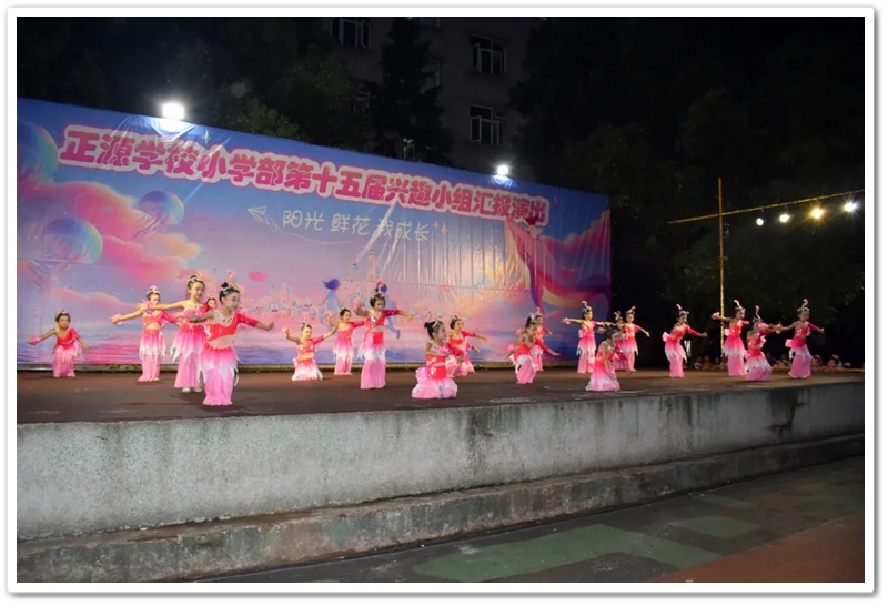 兴趣小组汇报演出,为孩子们提供了展示自我的舞台。小小的舞台上,他们用音乐表达内心的欢乐和喜悦,用舞蹈呈现年少的美好,用语言分享童年的点滴……这既丰富了校园文化生活,又充分展示了我校素质教育的成果。希望每个孩子都能在正源学校这块风水宝地上浸润阳光、健康成长,收获美好而精彩的童年!
