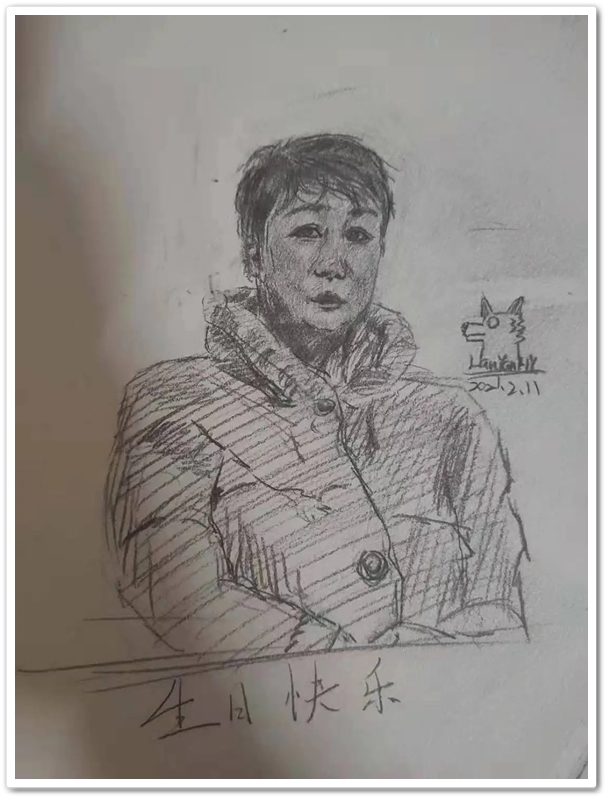 隔一天一节美术兴趣课,一个学期40节兴趣课下来,过年时,贺子睿躲在房间里一个小时,画了一幅像模像样的妈妈的肖像画,祝妈妈生日快乐。