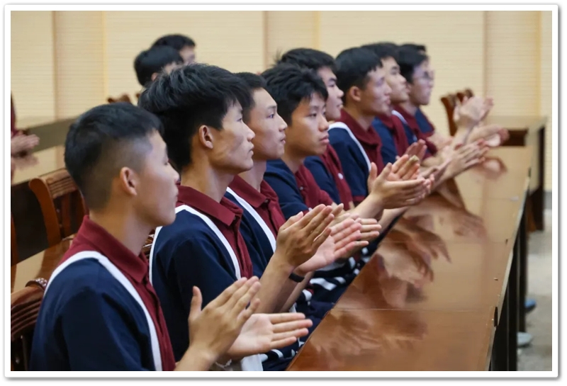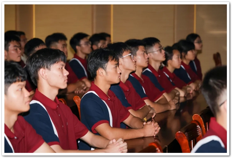 在部队官兵的全程陪同指引及讲解下,师生们参观了部队师史馆,深入了解英雄部队的光辉历程,并聆听了部队教导员的励志主题演讲《为胜利奋飞》。部队首长对此次活动高度重视,3位政工领导亲临现场接见师生一行,并与考取空军航空大学的两位飞行学员亲切交谈,勉励同学们努力学习、奋发有为、精忠报国。