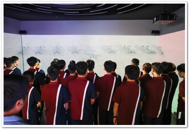 两位飞行学员和32名高三学子们沉浸式体验营区环境和训练火热氛围,亲身感受空天卫士驰骋疆场保家卫国的热血豪情,进一步坚定了奋斗强军、读书报国的志向。