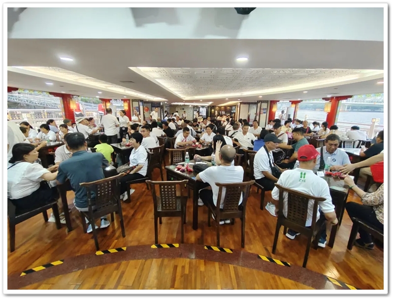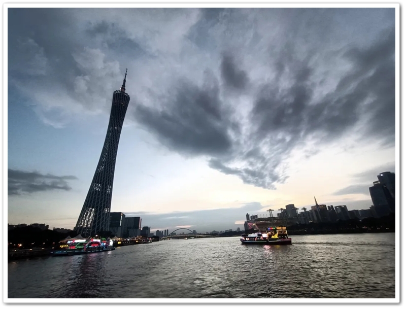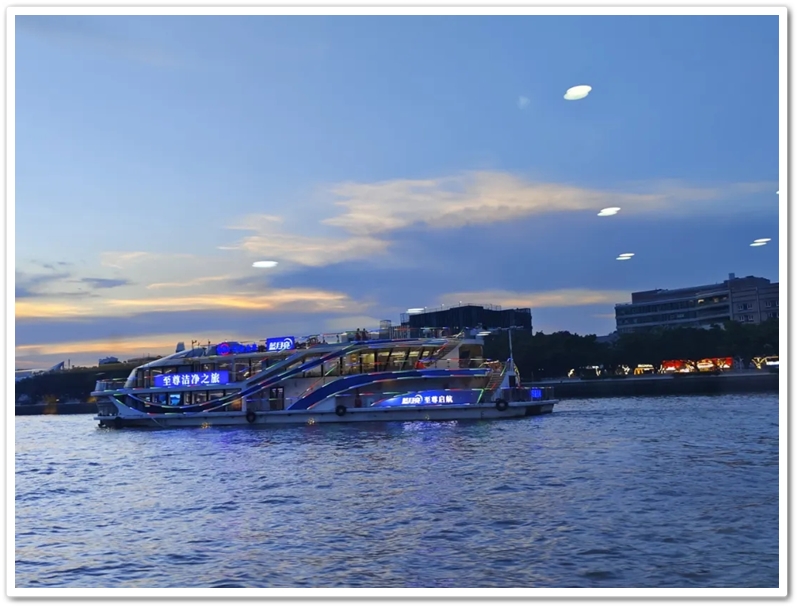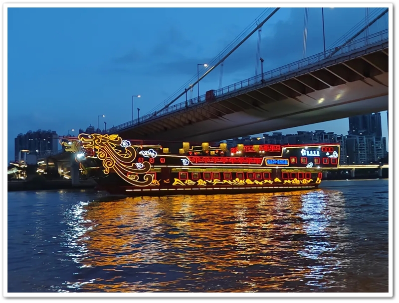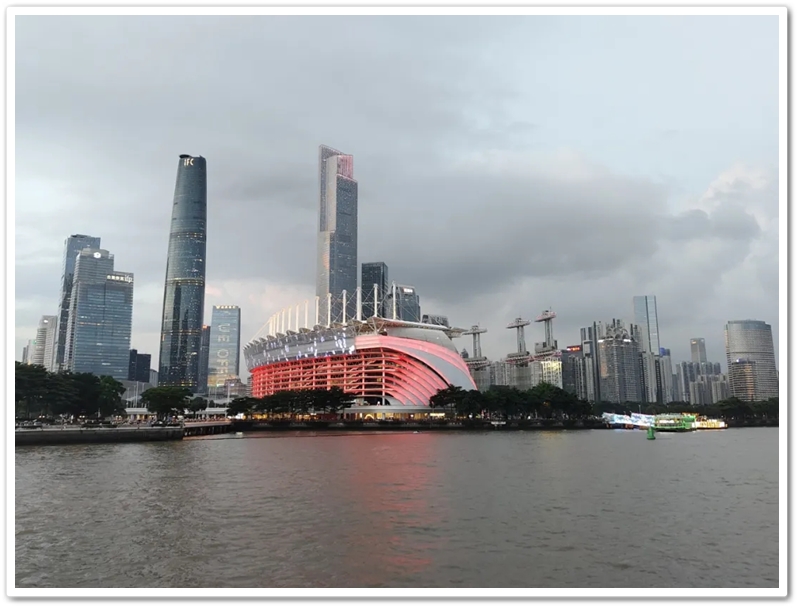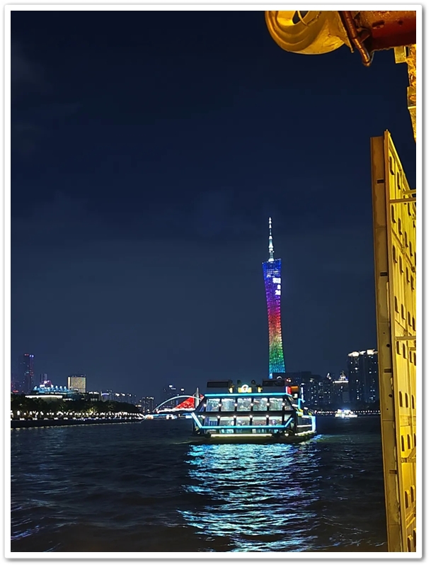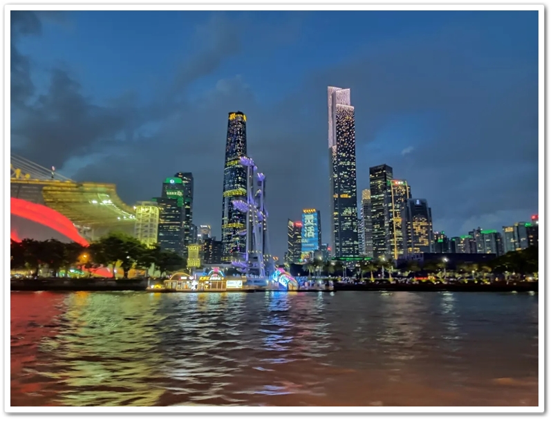 傍晚六点多,团队达到大沙头游船码头。晚6:50,职工们乘坐豪华游轮,游览广州市区珠江核心河段。七点半左右,两岸灯光陆续绽放。广州塔、海心沙、广州大桥、猎德大桥、星海音乐厅、海印桥、花城广场、琶醍等广州标志性景观建筑在五彩斑斓的灯光照耀下,美轮美奂,璀璨夺目。职工们一边赞叹珠江两岸美不胜收,一边为祖国的繁荣富强骄傲自豪。