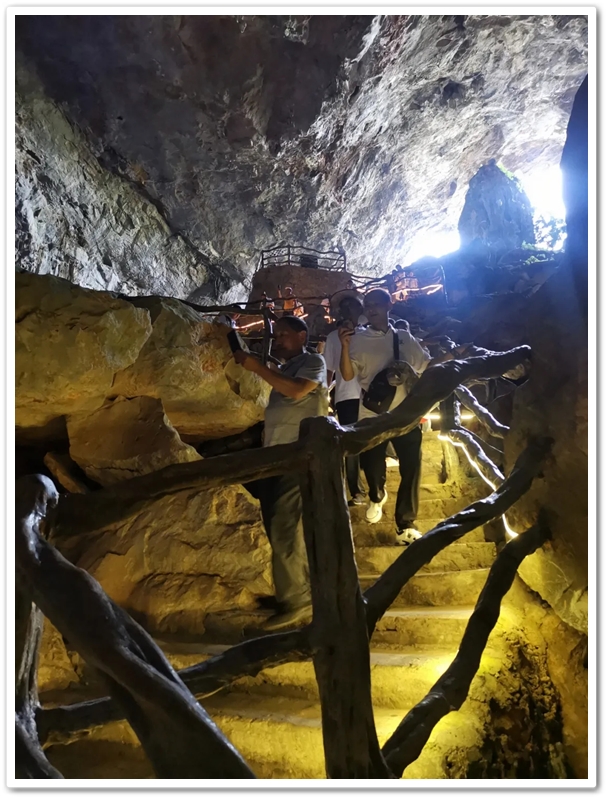 我们来到了连州地下河入口,那壮观的景象让我们忍不住再次停下脚步。大家相互簇拥着,以洞口为背景,拍下了又一张充满意义的合照,每个人的眼中都闪烁着对即将探索的地下世界的好奇与向往。