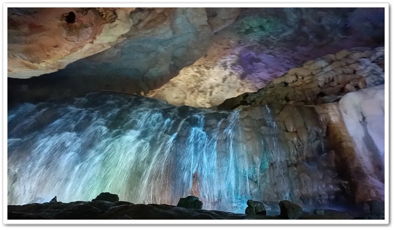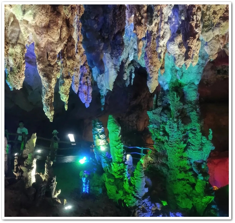 地下奇河幻彩流,钟乳石笋韵千秋。