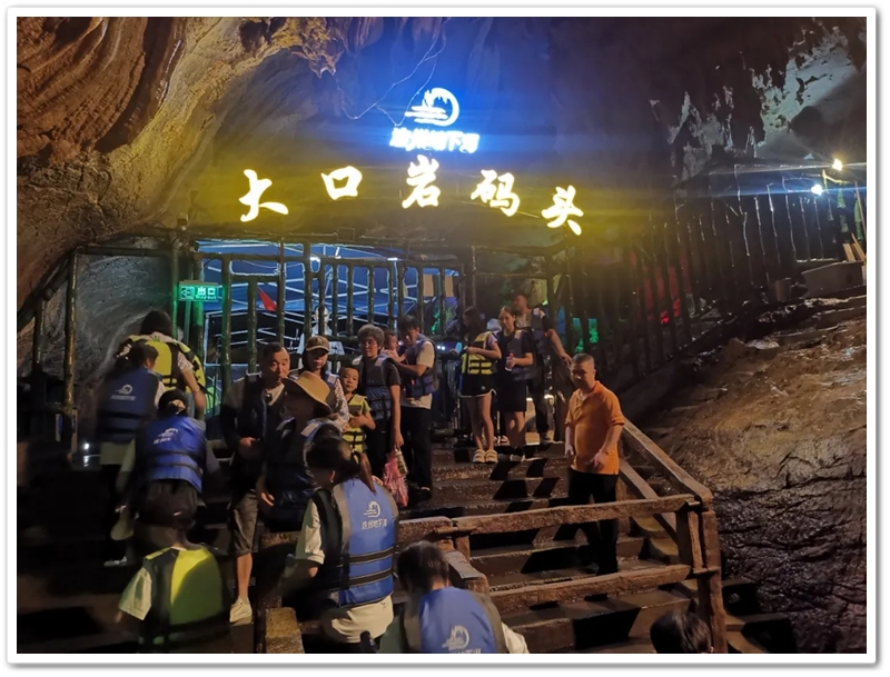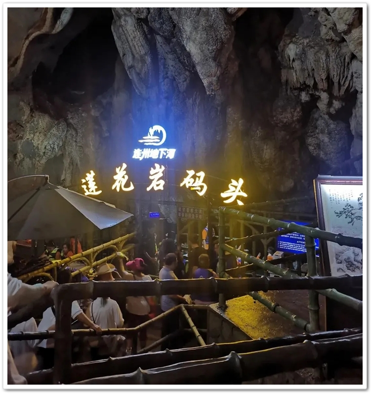 之后,我们在洞内的莲花台码头登上小船,准备在1500米的地下河中畅游一番。小船缓缓地在平静的河面上滑行,河水清澈见底,轻轻抚摸着船舷,发出悦耳的潺潺声。沿途,我们经过了“观音坐莲”景点,只见一尊形似观音的石笋端坐在莲花宝座上,神态安详,慈悲而庄严。接着是“鲤鱼跃龙门”,一条栩栩如生的“鲤鱼”仿佛正在奋力跃过龙门,那生动的姿态让人忍不住拍手叫好。地下河沿岸还有“寿星石”、“独角龙与鳄鱼大战”……让游客目不暇接,拍手叫绝!大家似乎还沉浸在对各种石钟乳的无尽遐想中,可船却在不知不觉中到达了大口岩码头,我们只能依依不舍地上岸了。连州地下河,让人不得不赞叹: