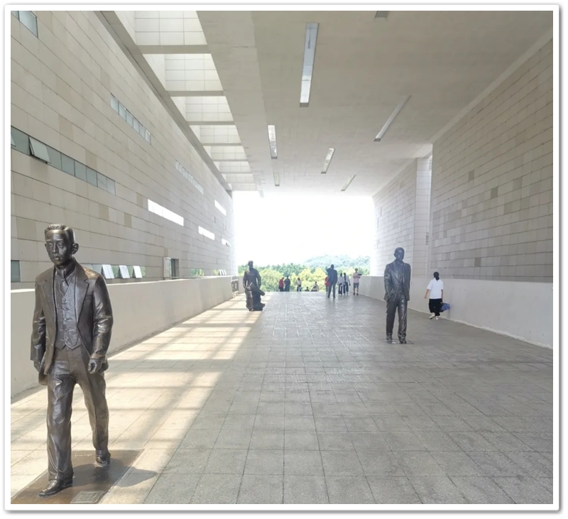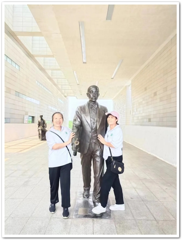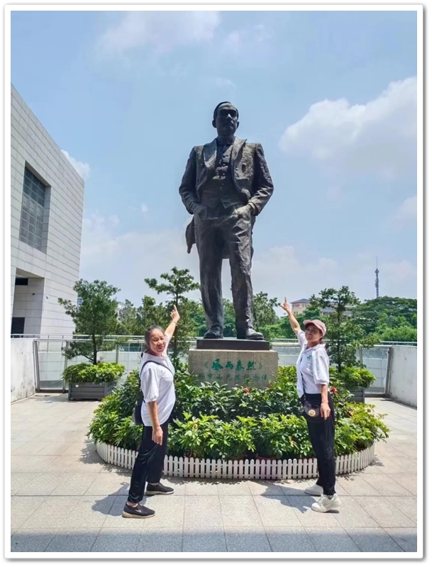 参观完黄埔军校旧址后,我们的团队又乘坐大巴来到了辛亥革命纪念馆。大家的心情似乎还沉浸在黄埔军校那段厚重的历史氛围之中,思绪尚未能完全抽离。刚一踏入辛亥革命纪念馆,大家便怀着迫不及待且庄重肃穆的心情四处参观起来。在门口的“辛亥革命纪念馆”巨大石头牌匾前,不少同志兴奋地留影,想要记录下这具有特殊意义的一刻。而后,我们沿着纪念馆的斜坡向上,怀着敬意、怀着期待在那里拍下了第二张团体大合照。
