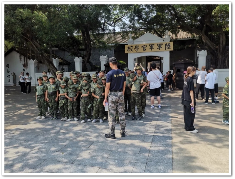 在参观过程中,我们还看到一群参加军事夏令营的少年也在现场参观。他们皮肤晒得黝黑,身着整齐的军装,头戴挺括的军帽,眼神中充满好奇与崇敬,他们排着整齐的队伍仔细观看展览,认真聆听讲解,让人感受到了传承的力量。