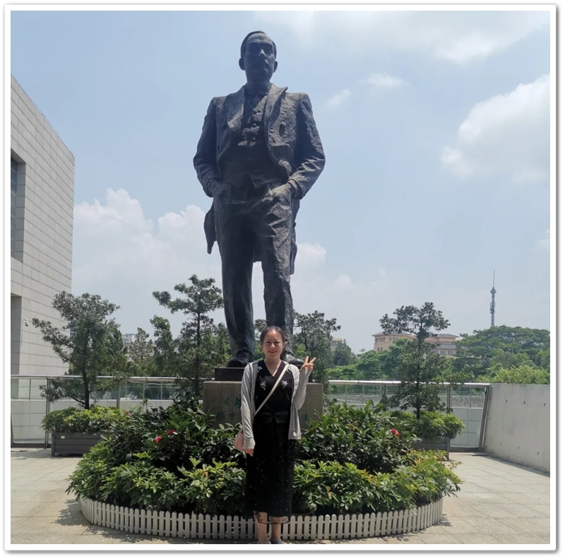 走到纪念馆的入口处,看到孙中山的塑像,不少人纷纷上前与之合影,以此表达对伟人的敬意。