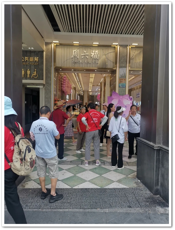 在购物时,大家发现这里的价格比起我们湖南耒阳要贵上不少。工人们不禁议论起来,有的说:“这价格可真不便宜,有点舍不得买啊。”有的则表示:“看看就行,还是家里那边实惠。”尽管如此,大家还是饶有兴致地挑选着,试图找到性价比高的物品。沿着街道前行,其他同事在步行街中间的广州古城模型旁也纷纷拍照留念,想要留住这独特的瞬间。职工们足足逛了近两个小时还意犹未尽,深深感受到广州文化的独特魅力。