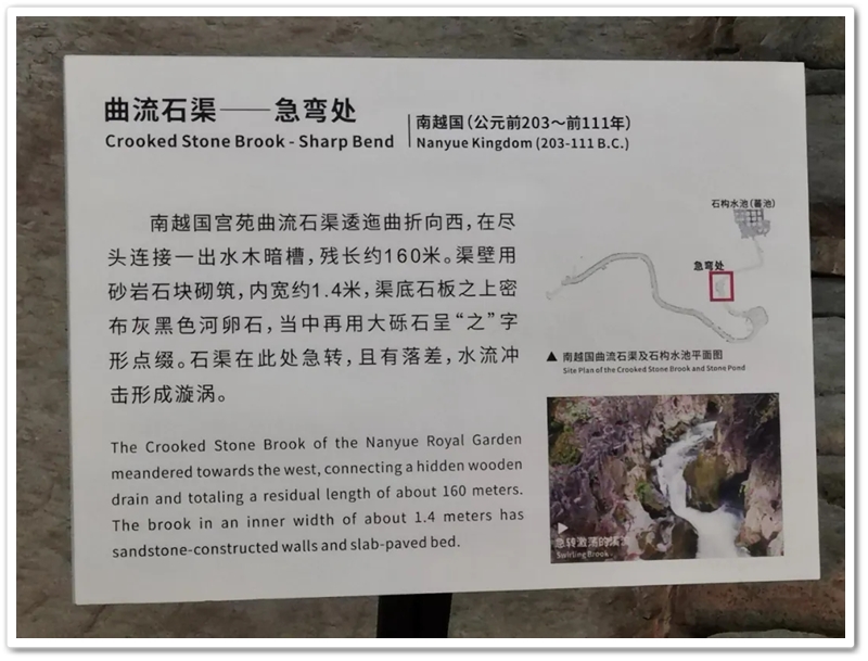 我们沿着参观路线缓缓前行,仔细端详着南越古国遗址的每一处细节。渠道的弯曲弧度,砖石的排列,都似乎蕴含着古人的智慧和匠心。有人推测着它的用途,或许是用于园林景观,或许有着更实际的功能。遗址旁的解说牌为我们提供了更多的信息,让我们对曲流渠的历史背景和文化意义有了更深入的了解。大家一边认真阅读,一边交流着自己的想法。