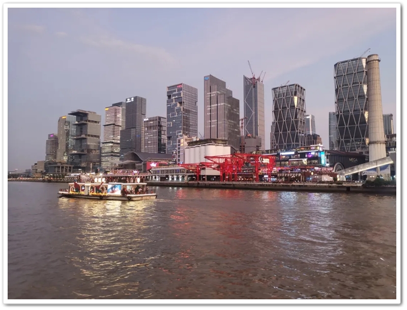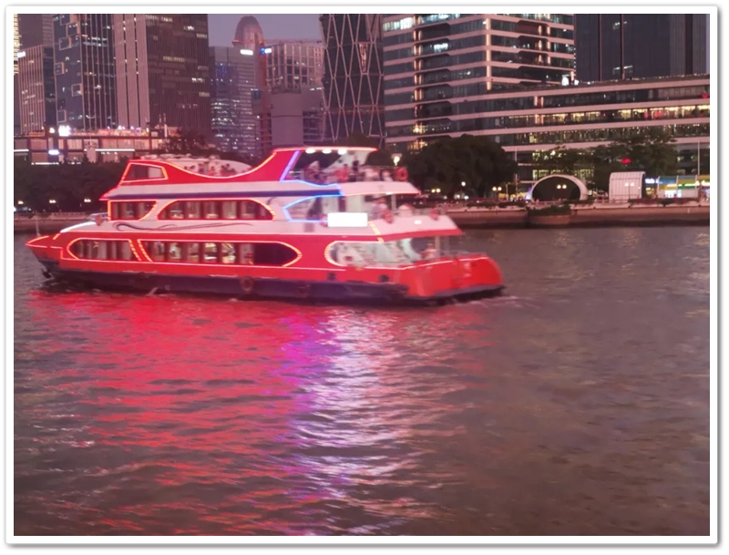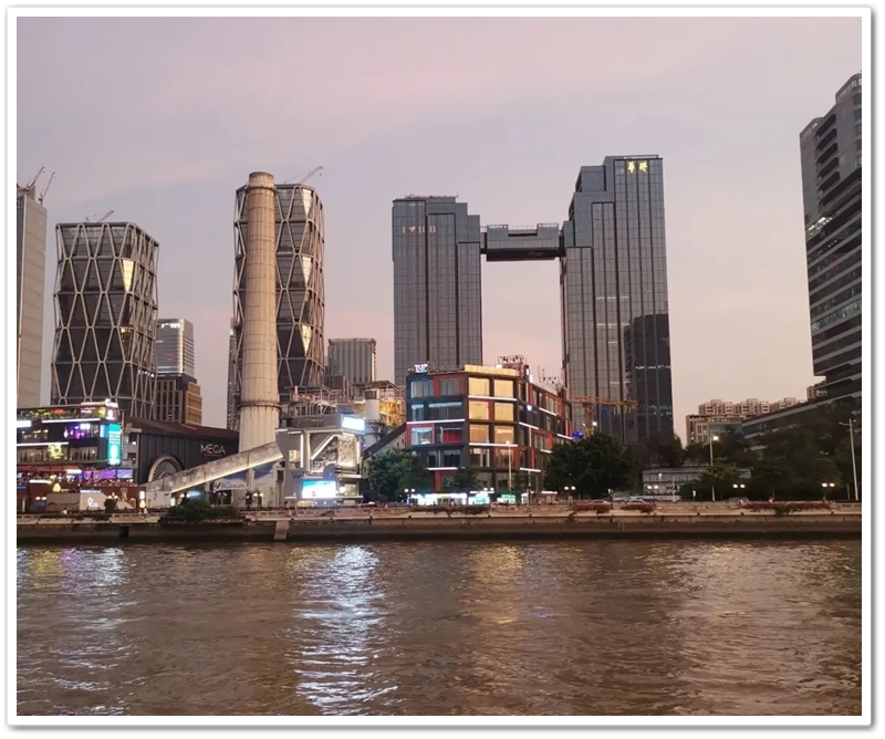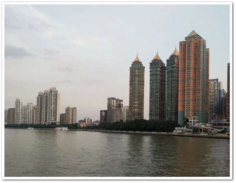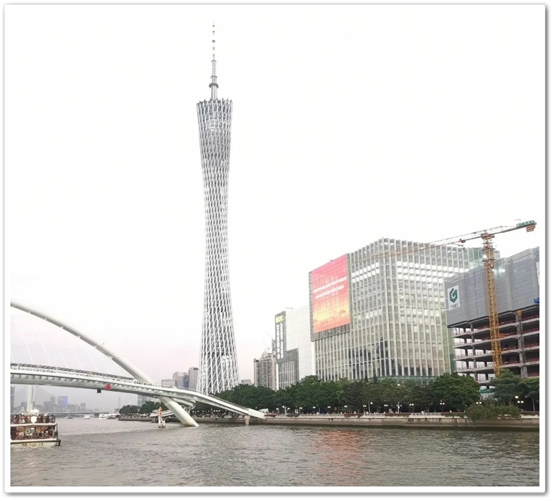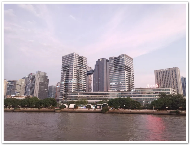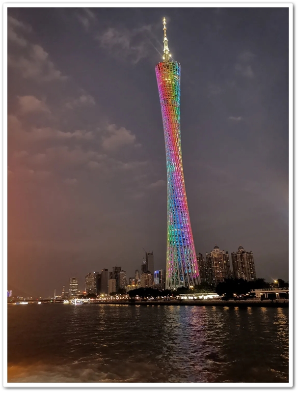 我们在广州游览的最后一站是乘船夜游珠江,傍晚七点左右夜幕降临,华灯初上,我们团队在广州市越秀区的大沙头游船码头登上了珠江的游轮。一踏上船,同事们的兴奋之情溢于言表。游轮缓缓启航,珠江两岸的美丽建筑逐一展现在眼前。璀璨的灯光照亮了广州塔,那高耸入云的身姿在夜色中显得格外迷人。塔身上的灯光不断变换着色彩和图案,如梦如幻。