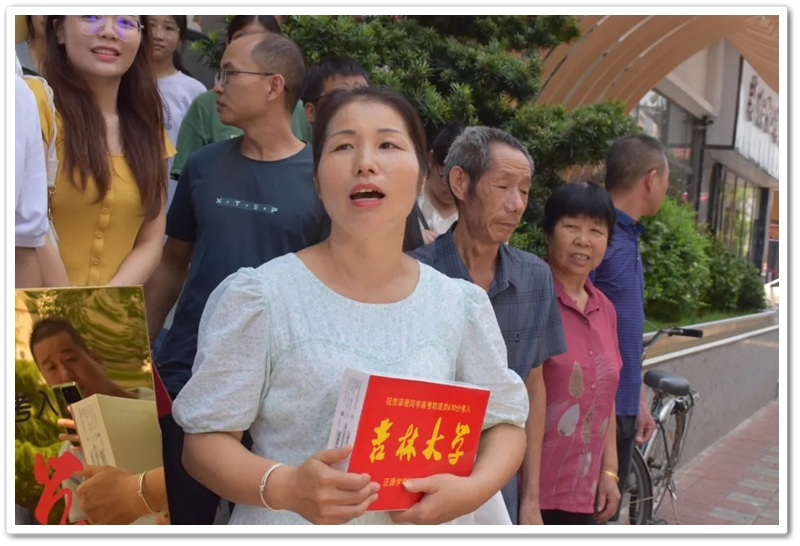 8月5日,罗校长率初高中老师同学们带着奖励铜匾和平板电脑来到德泰隆路,祝贺梁瑶物理类610分考入985吉林大学。