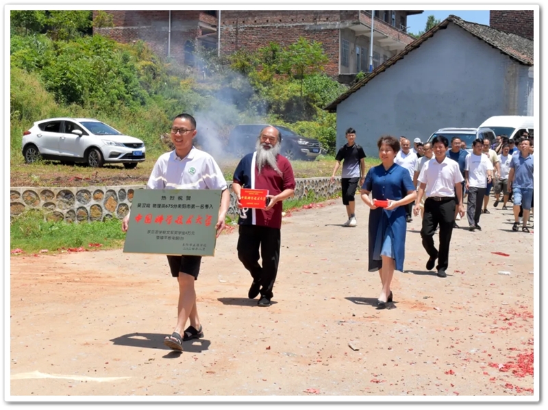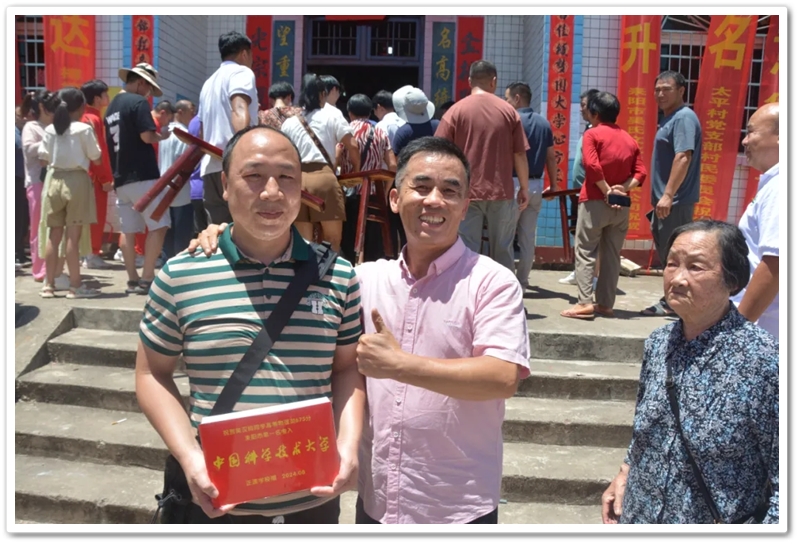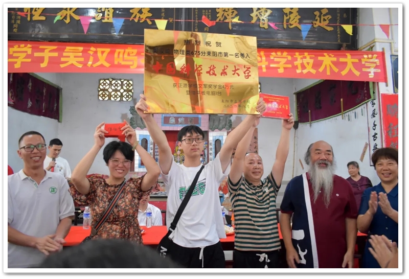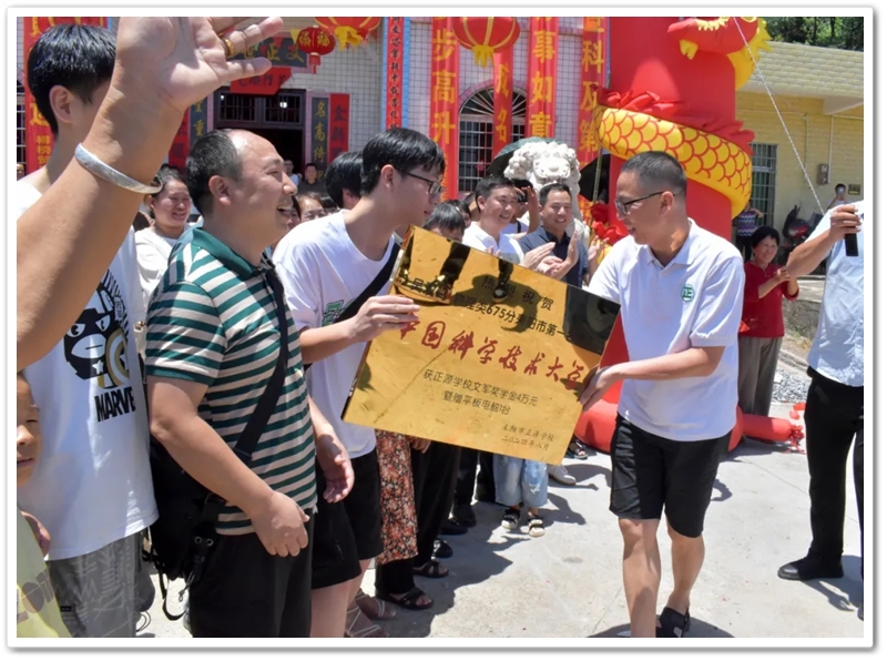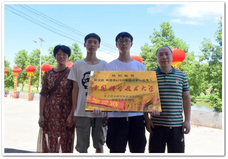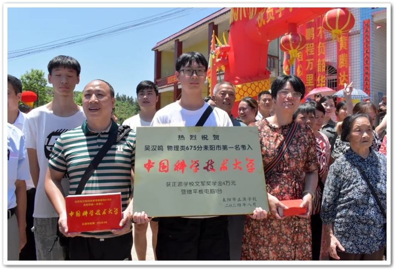 8月7日中午,罗校长携夫人梁晓芬率十多位老师、三十多位同学带着奖励铜匾、平板电脑和4万元文军奖学金,分乘3台校车5台小车浩浩荡荡来到太坪圩乡太平村六组泉塘湾,热烈祝贺留守孩子吴汉鸣物理类675分、耒阳市第一名考取中国科学技术大学。
