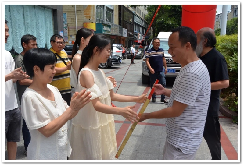 神农新世界大酒店特意在酒店门口安座了大红充气拱门,增添了不少喜庆气氛。刘诗琦高三科任老师全部到齐,七八位要好的女同学也来到了颁奖现场。老师们对刘诗琦不同寻常的关爱,刘诗琦与同学之间的人缘和友谊,由此可见一斑。大红充气拱门下,满脸稚气、看上去像小学初中女孩的刘诗琦双手捧着的奖励铜匾熠熠闪光,母亲李日荣手中的2万元“文军奖学金”和姐姐端着的奖品华为平板电脑引人注目。