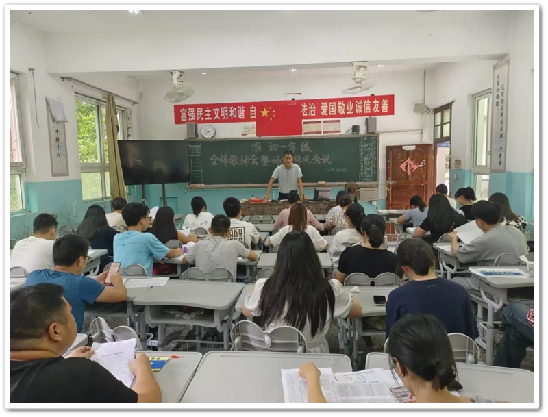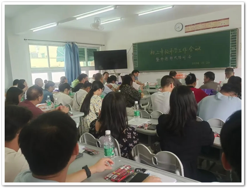 8月27日召开全体初中教师大会,学部主任、学部德育主任、学部教务主任分别就班主任工作、德育工作、教务工作,对全体初中教师展开培训。