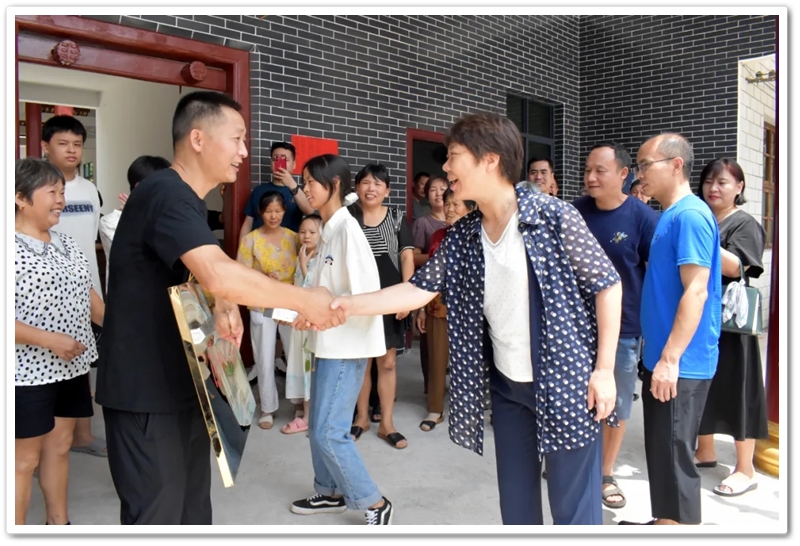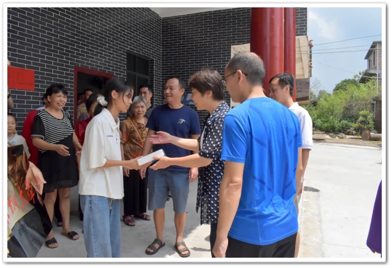 晌午时分,校长夫人、学校财务总监梁晓芬女士率班主任陆建军等老师达到白沙坪湾。在新落成的正厅屋前,向刘雅颁发奖励铜匾和华为平板电脑。全村男女老少聚集正厅屋前,共同见证刘雅的幸福时刻。梁晓芬女士盛赞刘雅聪明好学,成绩优秀,感谢家长们对正源的信任,表示正源决不辜负所托,“您送给我们一个孩子,我们还您一个才子!”