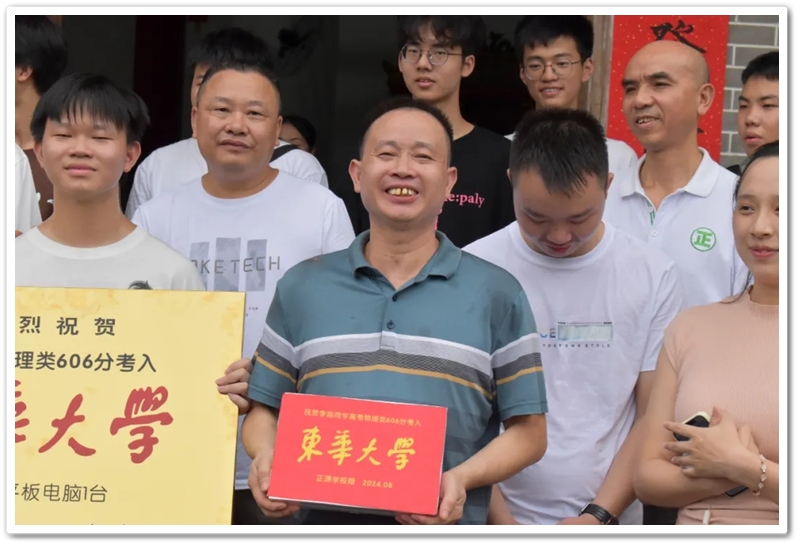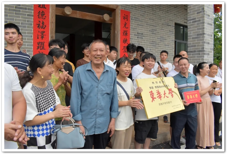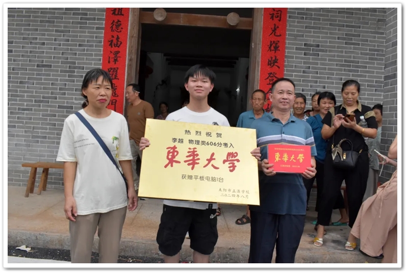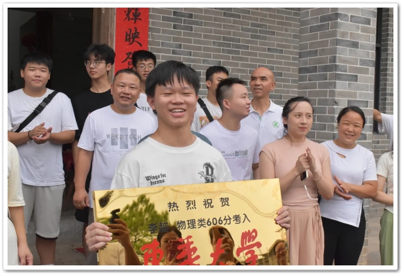 家住永济镇麻立塘新屋里的李四生、阳永桂夫妇8月16日在新祠堂举办升学宴,与亲朋好友分享儿子李越物理类606分考取东华大学的喜悦。
