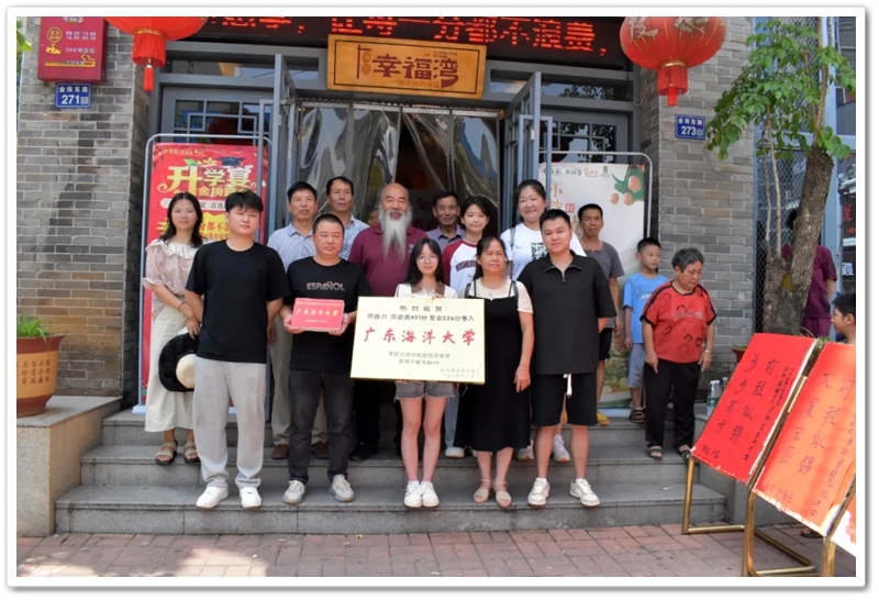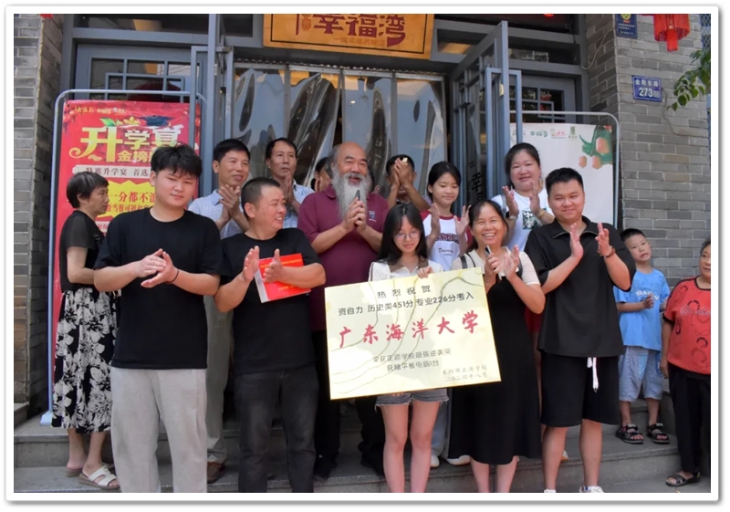 8月21日,罗校长、周济龙副校长和老师们带着颁奖铜匾、平板电脑来到金阳路酒店,祝贺白洋渡村留守女孩资自力零基础学美术,历史类451分、专业226分考取广东海洋大学。
