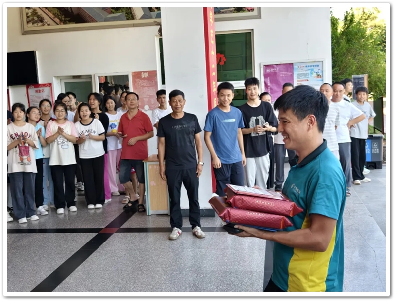 罗校长现场再点将,小学、初中、高中班主任一并站在队伍前,各自对陈澍取得今天的成绩“讲几句”。