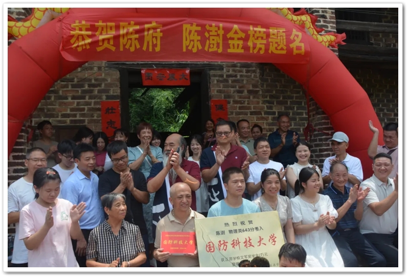 罗校长接着说,福龙村这块人杰地灵的宝地,孕育出了陈家优秀人才,很多网友留言,国防科大不比清华北大差,号称军中清华,比清华还清华!大家说是不是啊?罗校长的提问引起大家共鸣:是的!掌声一片。