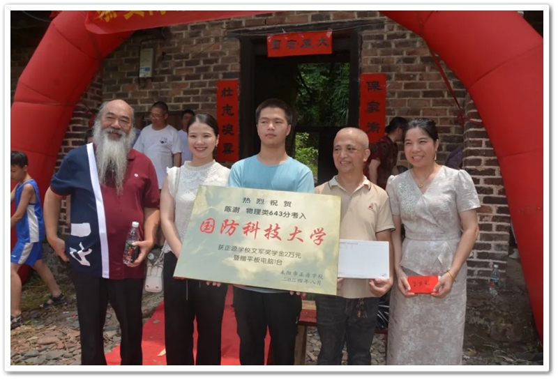 陈澍接过父亲的话语,不慌不忙表述出自己的心里话:首先感谢党和国家给我的教育资源,其次感谢我的父母和家人给我的支持,再是金杯小学、正源初高中老师的培养和关心,因为有了这些,我才能如愿考上最高军事殿堂国防科大,在这里我再次衷心感谢!