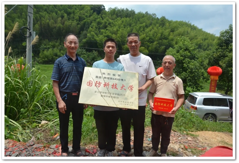 陈澍班主任张权荣向大家介绍,今天来学校领奖的还有高三年级246班陈澍的舅舅,陈澍高考分数是643分,录取国防科大。