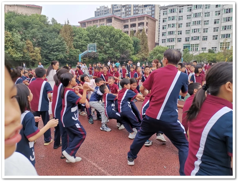 第二轮、第三轮比赛中,同学们的腿不断地往后移,越挪越远,红绳吊环从中点不停地向两边移来移去。此时的集体主义精神、团结协作精神彰显得淋漓尽致。加油声,欢笑声此起彼伏,将现场的气氛推向了高潮,整个比赛现场洋溢着喜悦和团结友爱、拼搏向上的精神。