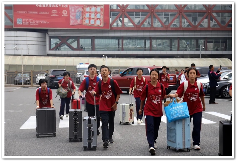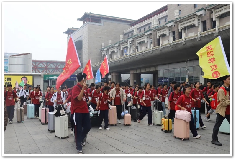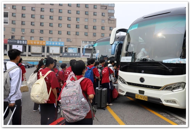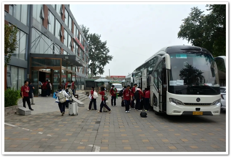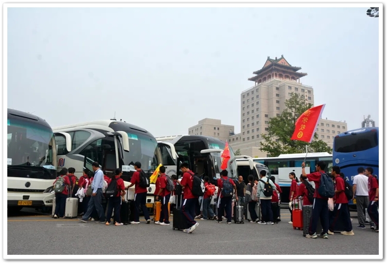 北京西站北广场集结完毕,正源学子们排成四路纵队,昂首阔步迈向停车场。