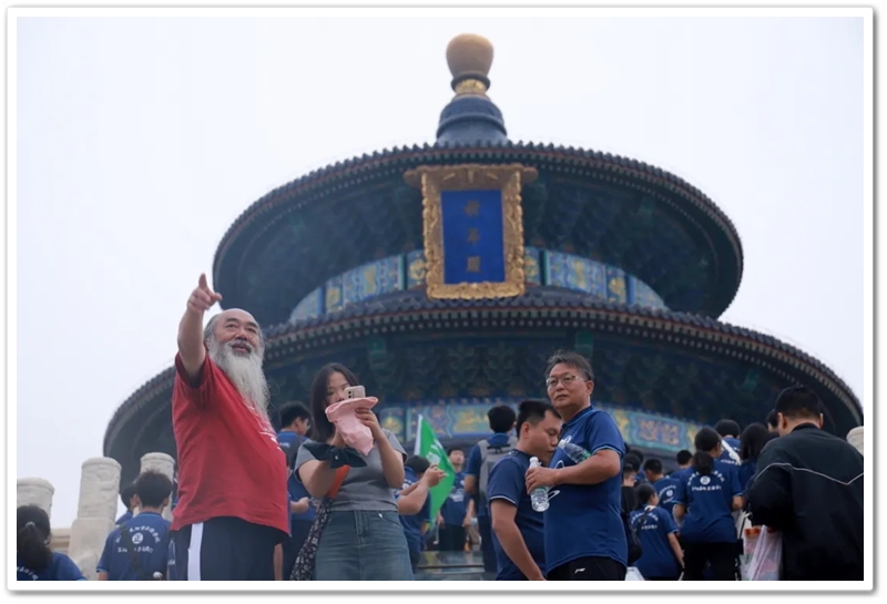 大巴车队已在火车站广场迎候。登车直抵酒店,入住休憩过后,励志行团队下午三点出发前往天坛公园。