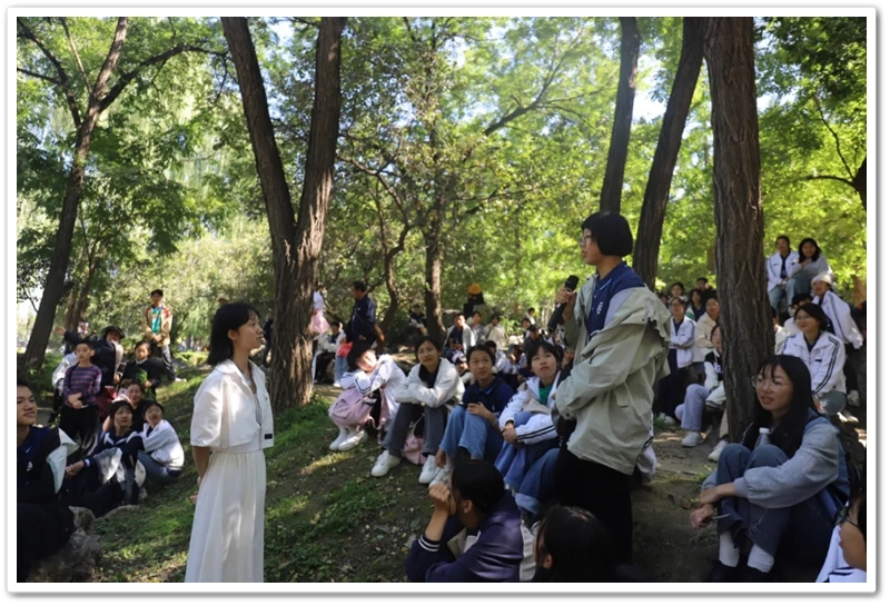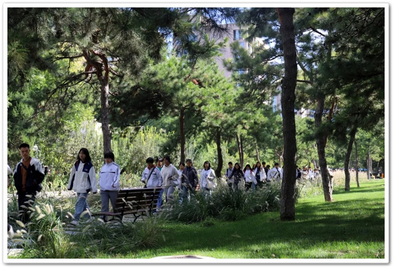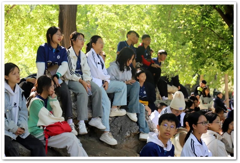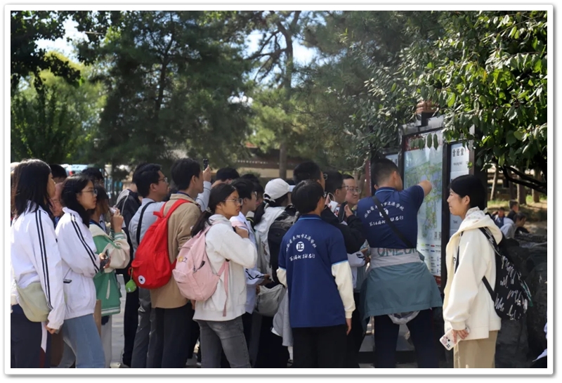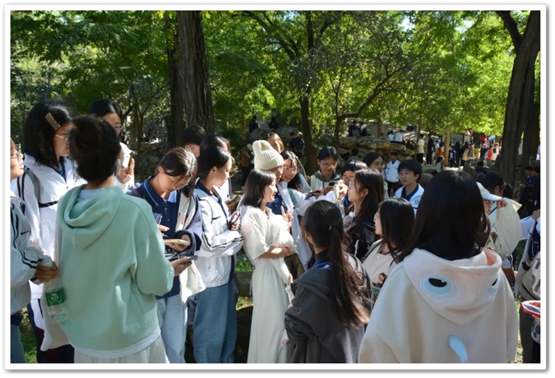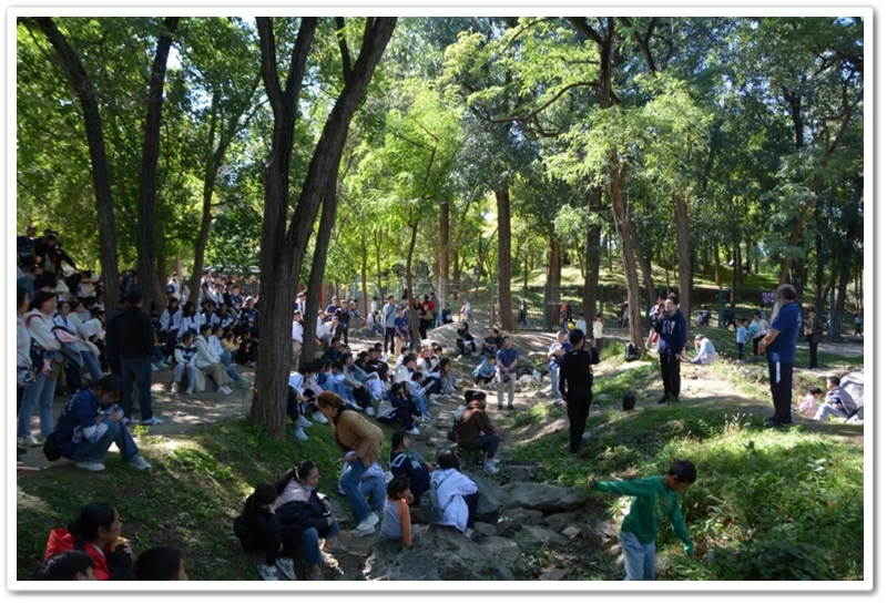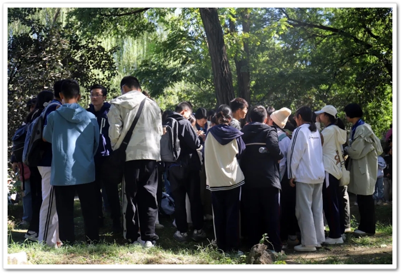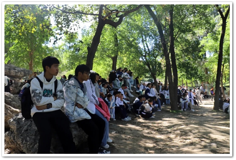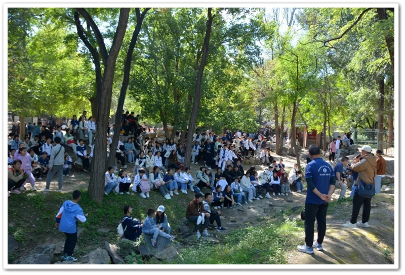 圆明园一处小山坡上,北京的学长学姐们正亲切又热情地迎候学弟学妹们的到来。