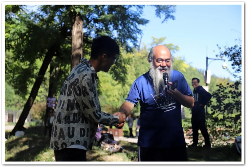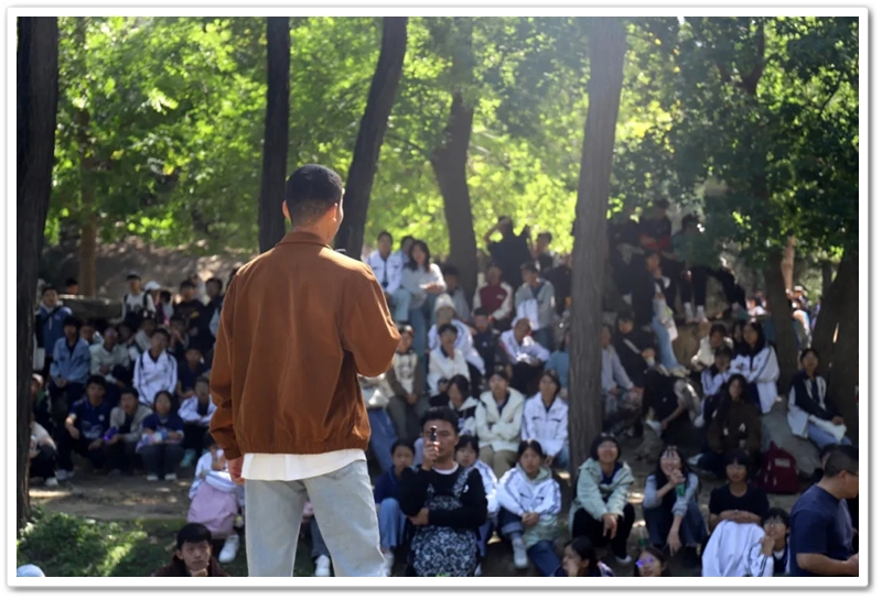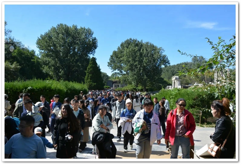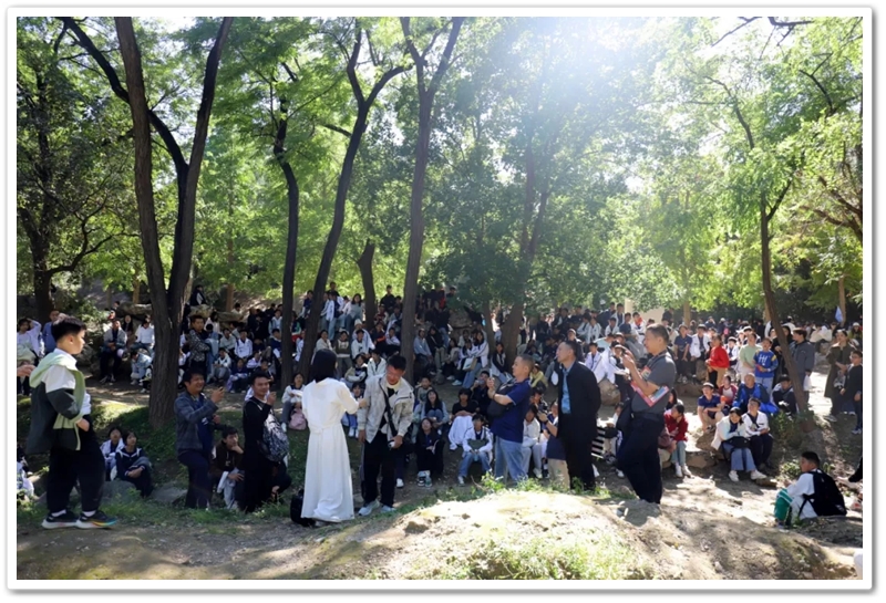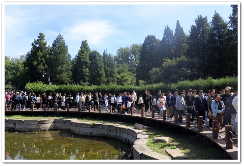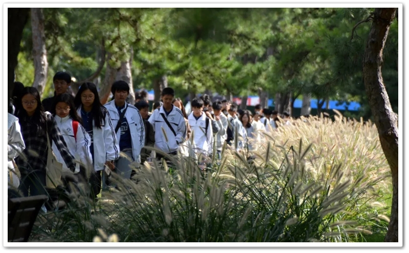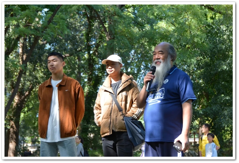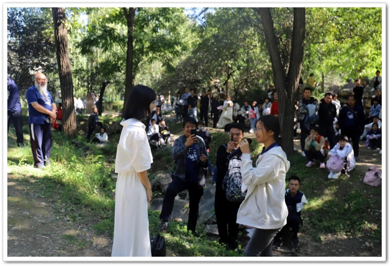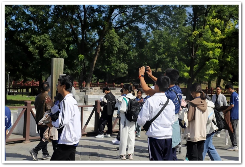 圆明园一处小山坡上,北京的学长学姐们正亲切又热情地迎候学弟学妹们的到来。