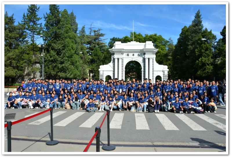 上午9点,正源学校北京励志行团队进入清华大学东门。194位同学分列两行,队列整齐、气宇昂扬,在清华大学工作人员陪同下一路漫步一路参观。