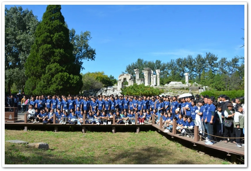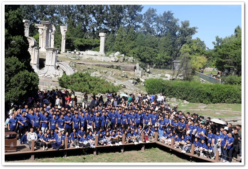 中午时分,圆明园地标建筑大水法遗址前,正源蓝蔚然汇集,北京励志行团队220师生浩浩荡荡,队列森然。