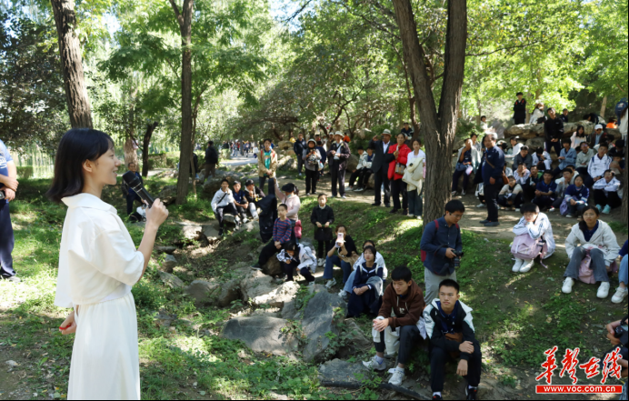 随后,大家步行至圆明园席地而坐,听学长、学姐的分享演讲。21级清华社科心理徐轲娟,北大马院24级直博班陈云飞,以及中国政法大学、中国公安大学、北京林业大学的优秀学长、学姐热情地与同学们分享大学见闻和学习心得。他们的言辞中既有对过往经历的深情回顾,也有对未来挑战的勇敢展望,每一个故事都蕴含着深刻的哲理与宝贵的经验。徐轲娟告诫学弟学妹,“不要把高考当成人生的唯一目标,更重要的事情是找到自己想要做的事情,找到自己的位置。不断学习,不断超越自我,将来做一个对社会、对国家、对民族有贡献的人!”现场气氛热烈而活泼,游客们纷纷驻足倾听。