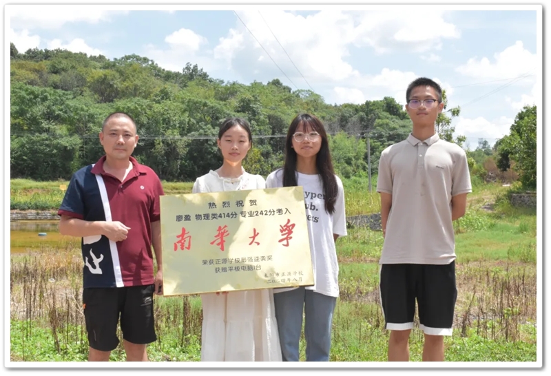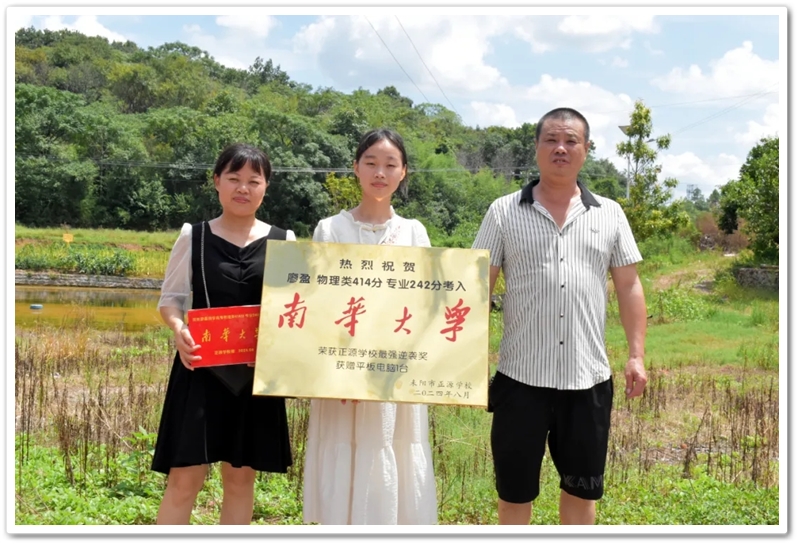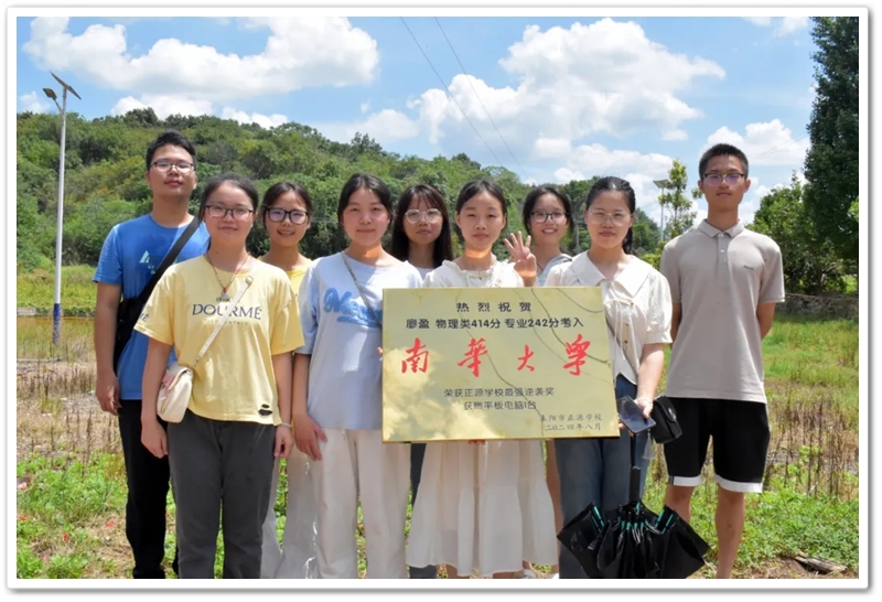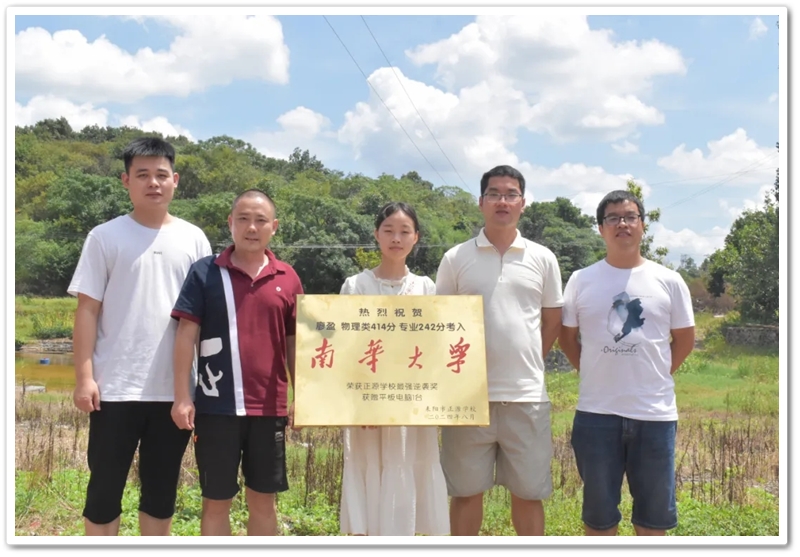 8月22日,高三年级副主任张权荣和老师同学带着颁奖铜匾、平板电脑来到衡南县江口镇廖湾里,祝贺廖盈逆袭到省内著名的一本大学。