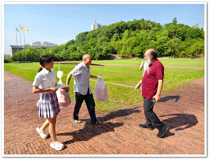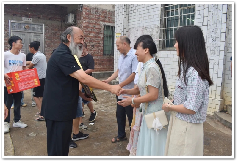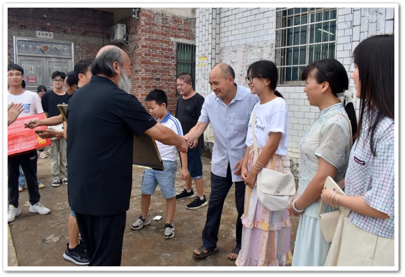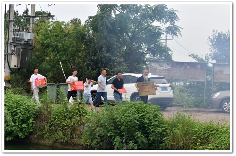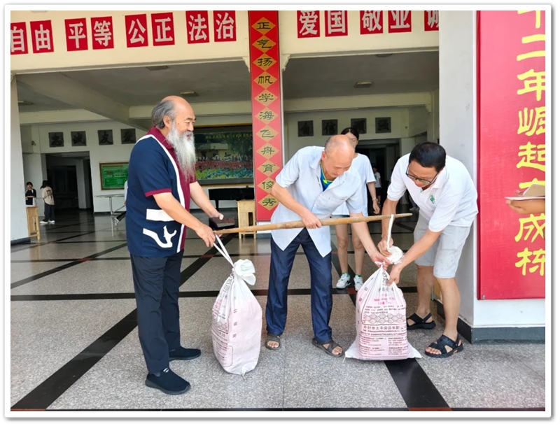 8月5日,邝淑梅和父亲邝意成挑来66斤仁义面,致谢正源初高中老师们。