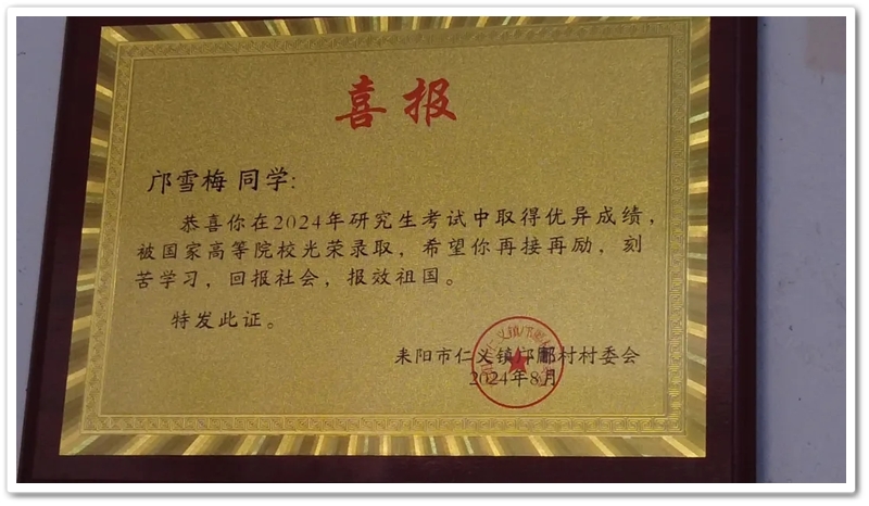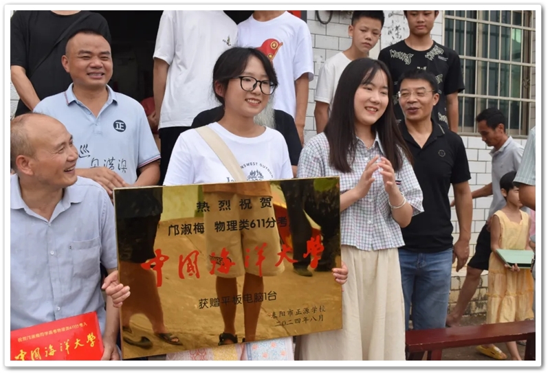 8月20日,有12位正源学子同时举办升学宴。其中需要颁发文军奖的600分以上高分及军校生,城区1家、仁义镇1家、导子乡2家、新市镇2家、大市镇3家,9人都要颁发文军奖。罗校长一路从新市颁奖过来,最后来到仁义镇,热烈祝贺邝淑梅、邝雪梅姐妹俩双喜临门。姐妹俩先后考取985,这是多少家庭梦寐以求的福气。妹妹圆梦985时又逢姐姐从东南大学本科毕业,顺利保送本校研究生,更是喜上加喜。