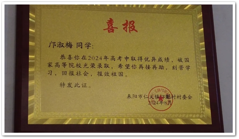8月19日,邝墉村第二届优秀学子座谈会上,邝家姐妹双双荣获表彰。