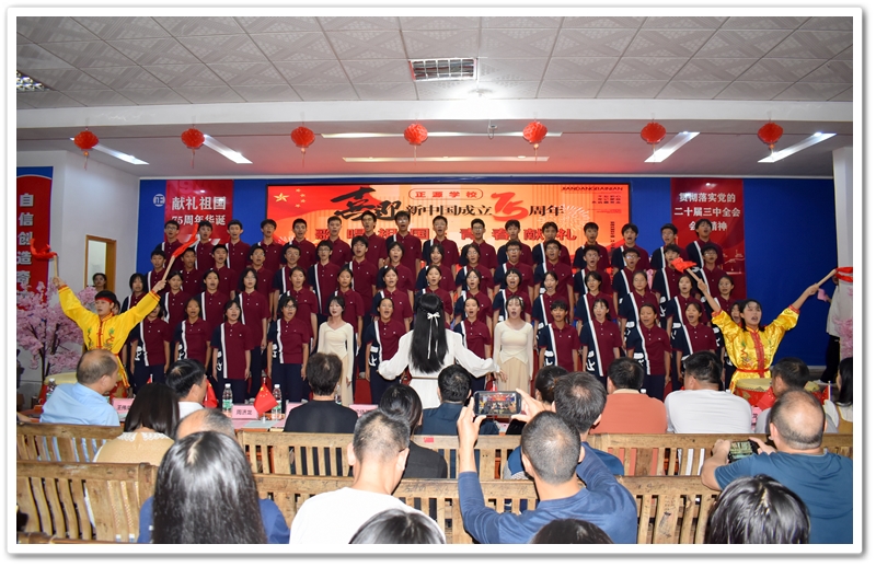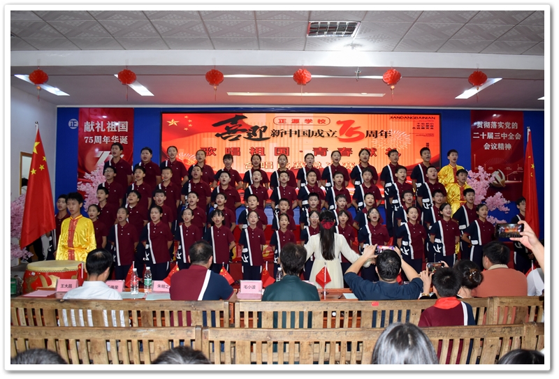 辉煌璀璨七十五,盛世华章耀神州。少年殷殷爱国情,今朝歌与祖国听。鲜红的国旗迎风飘扬,嘹亮的歌声响彻校园。为庆祝中华人民共和国成立75周年,传承红色基因,弘扬爱国精神,正源学校于10月17日开展了以“歌唱祖国,青春献礼”为主题的校园班级合唱比赛决赛。