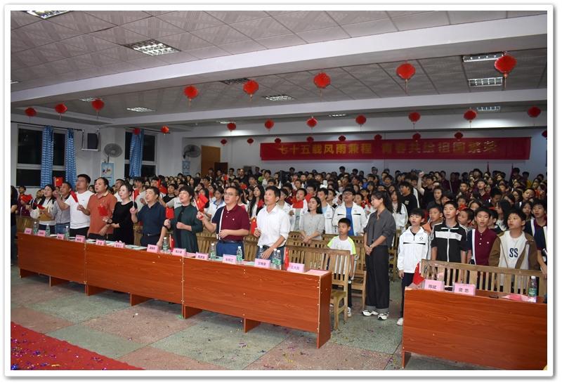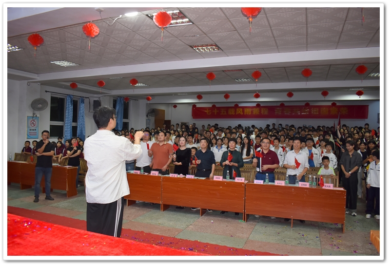 75年风雨兼程,75年披荆斩棘。准高一年级360班带来了合唱《走向复兴》。同学们的歌声激昂澎湃,充满了斗志,激励着大家为实现中华民族的伟大复兴而努力奋斗。