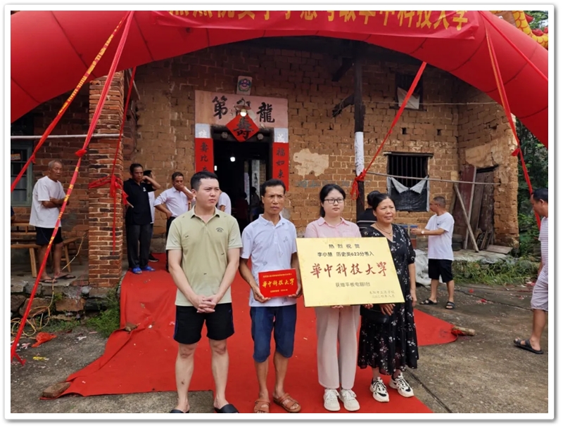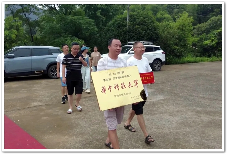 8月15日,“耒阳最牛文科班”班主任陆建军老师率老师同学们带着烟花鞭炮、颁奖铜匾和平板电脑来到哲桥镇石塘村,祝贺李小慧文科623分,正源第五名、耒阳市第七名考取华中科技大学。