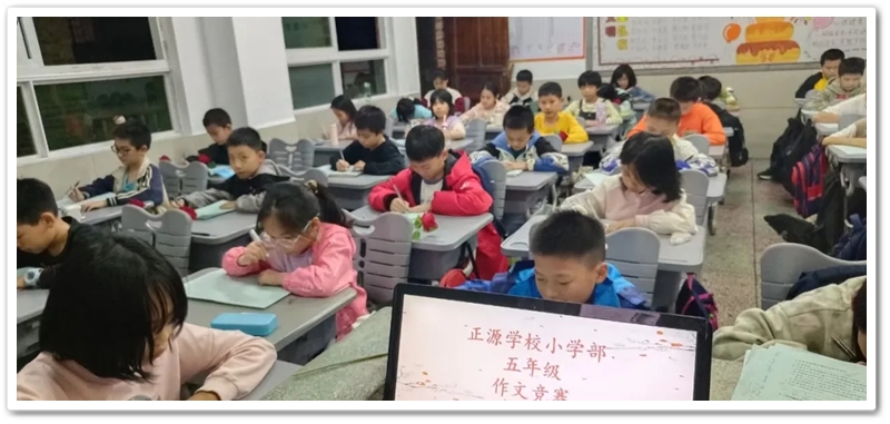 一卷秋风,一日新凉。为了激励学生乐于积累,乐于写作,在这个金秋送爽、硕果累累的季节里,正源小学部五年级于10月25日举行了作文比拼竞赛,一群怀揣梦想的小小作家们用文字编织出一幅幅生动有趣的画面。