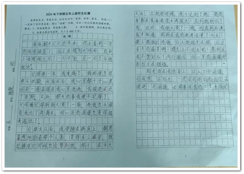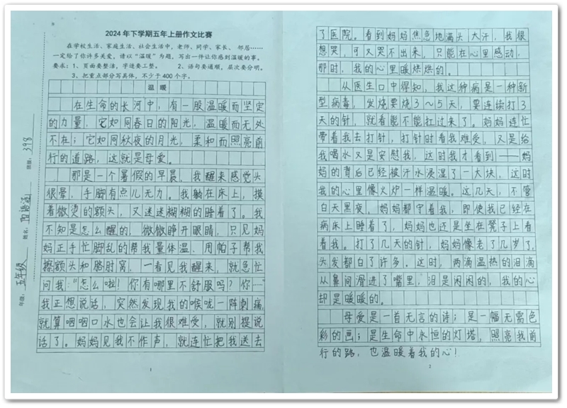 童心妙笔,书写未来——正源五年级作文竞赛佳作频出