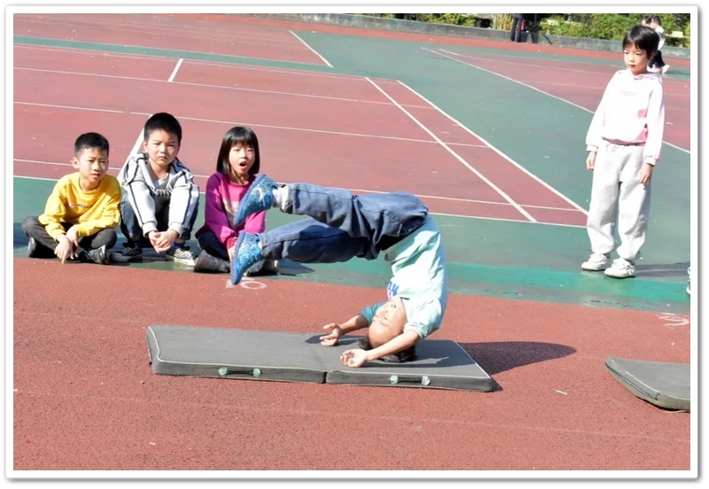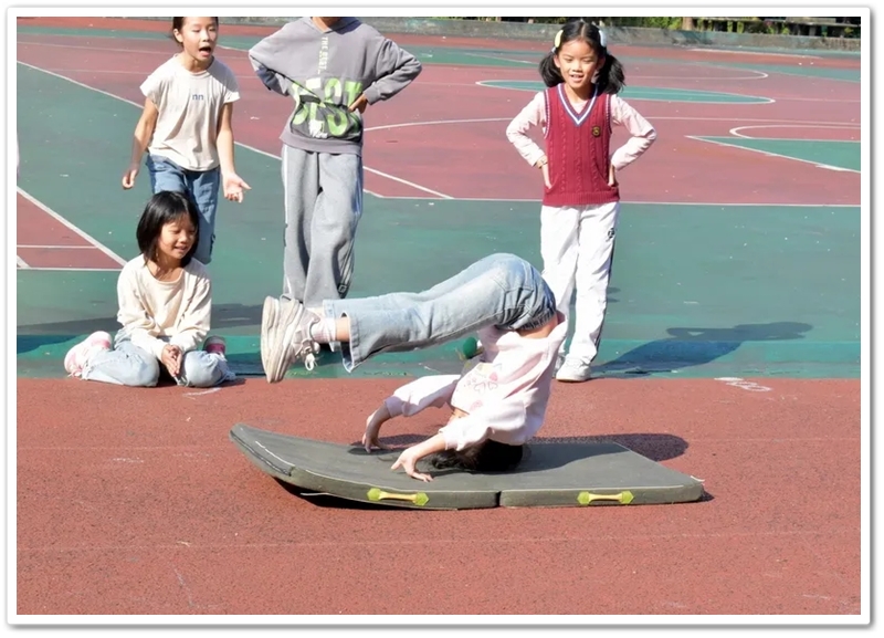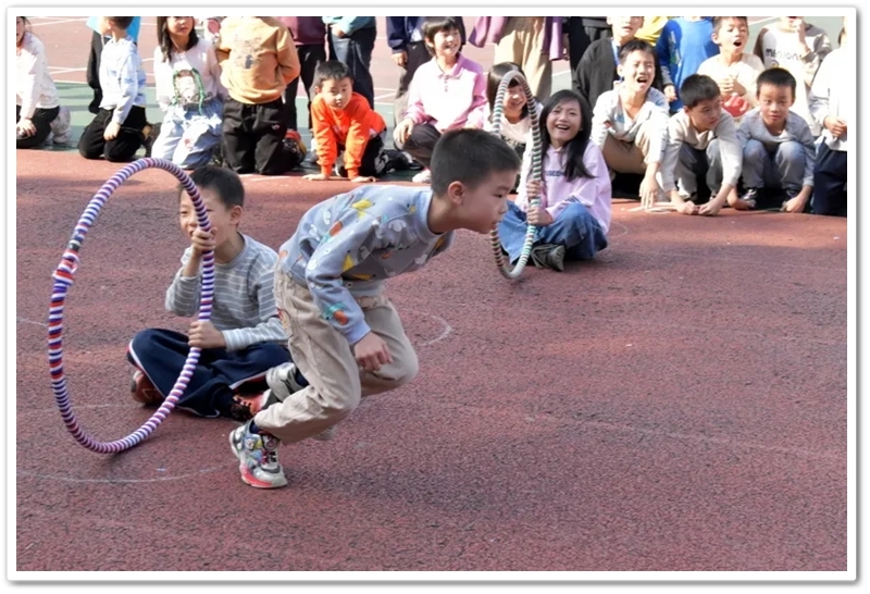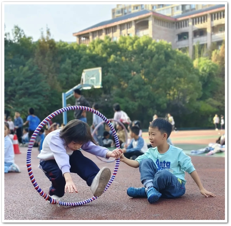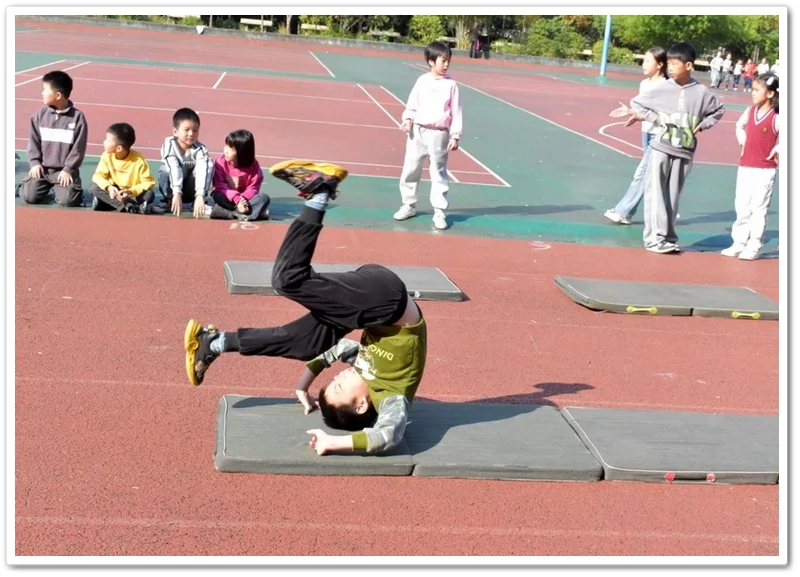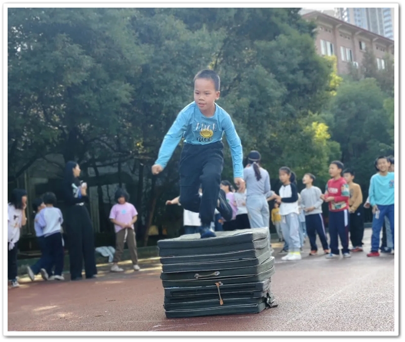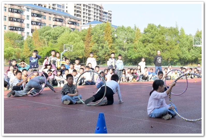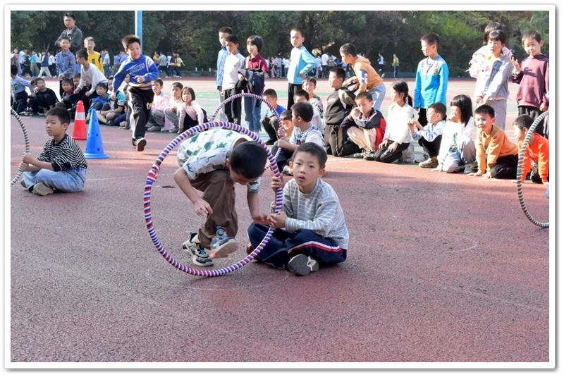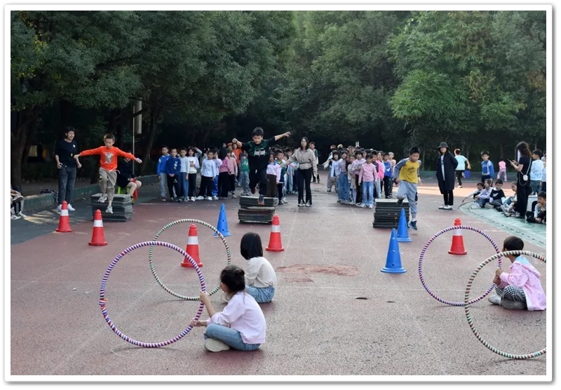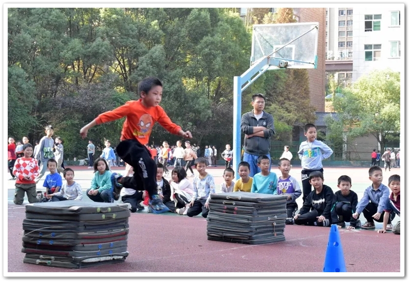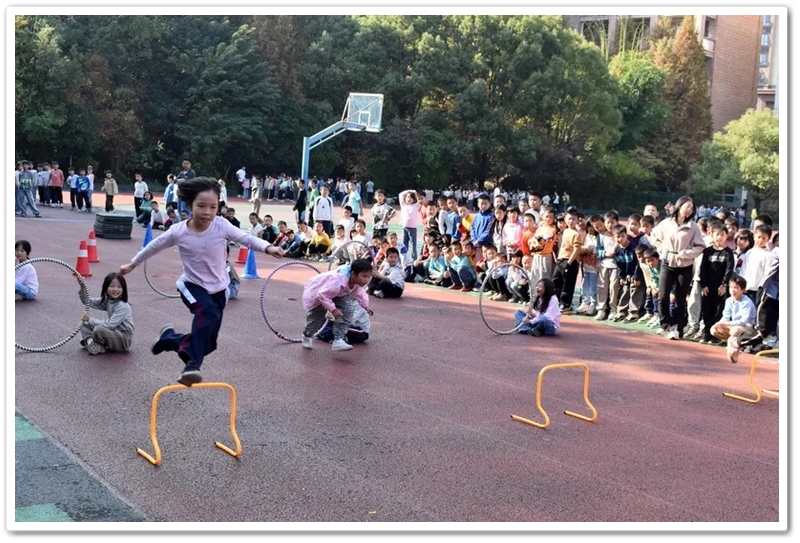 在钻呼啦圈的游戏中,孩子们笑声连连,有的同学因为卡住了,立刻引来旁边伙伴的鼓励与支持,场面温馨而又热闹。而在翻跟头的环节,勇敢的孩子们一个接一个地挑战自己,飞速翻转,尽管摔倒了,他们也毫不气馁,爬起来继续挑战下个环节,眼中闪烁着坚定的光芒。