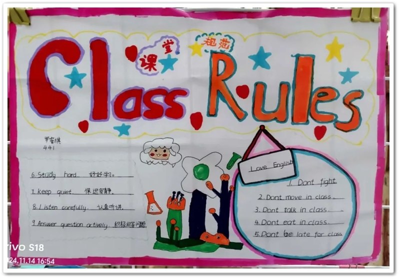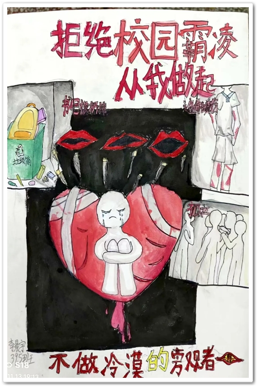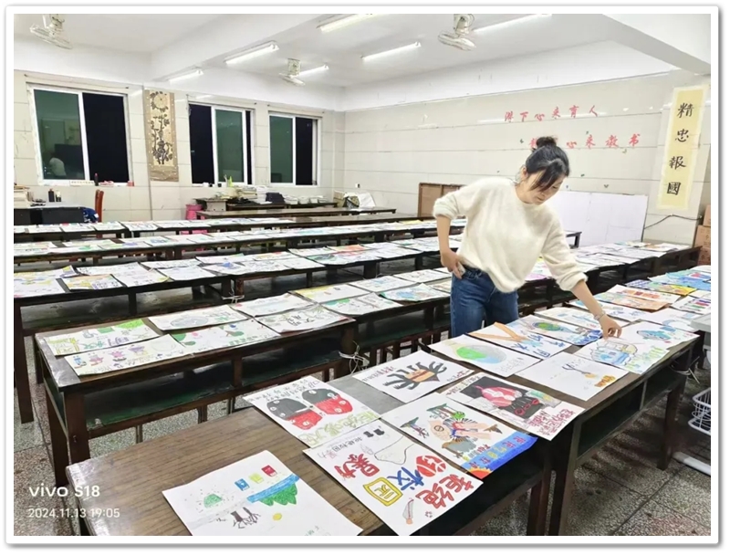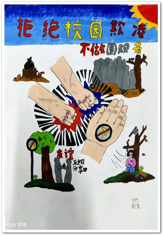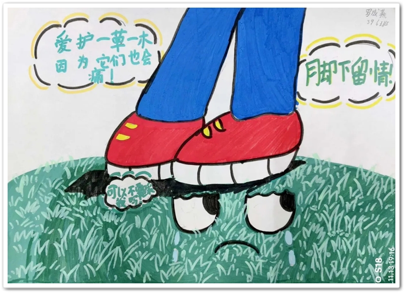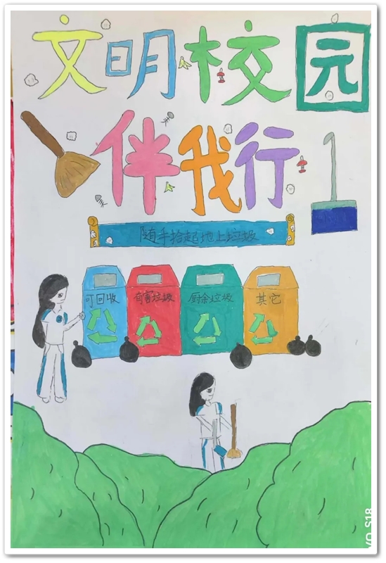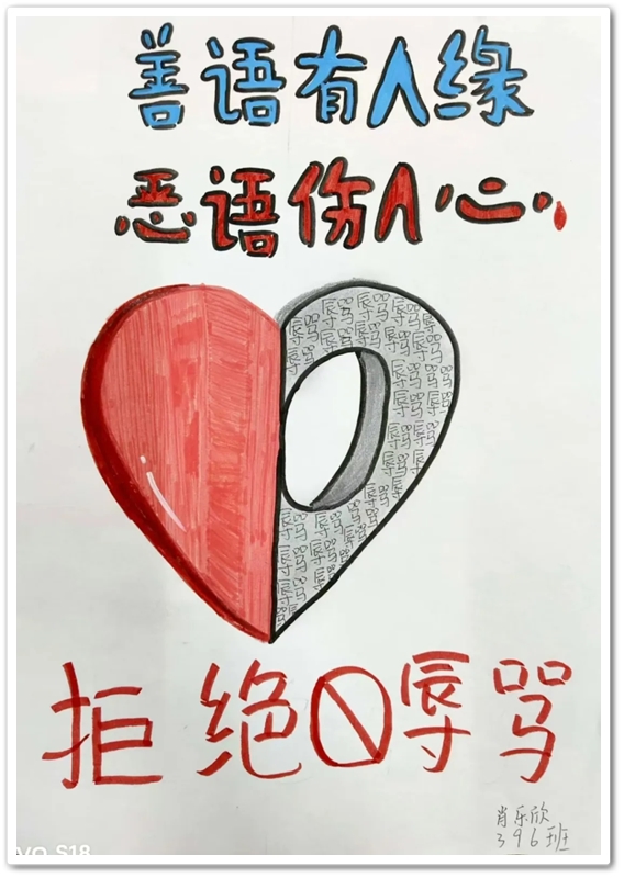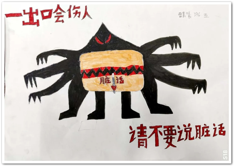 比赛中,同学们就热情高涨地投入其中。在五年级的招贴画创作中,孩子们充分发挥想象力,色彩的搭配大胆而奇妙。有的招贴画以醒目的文明标语为核心,如“善语有人缘,恶语伤人心”,有的以简单深刻的图案诠释不文明的行为带来了心灵上的伤害,还有的用漫画描绘礼仪故事,每一个形象都栩栩如生,仿佛在向大家诉说文明的故事。