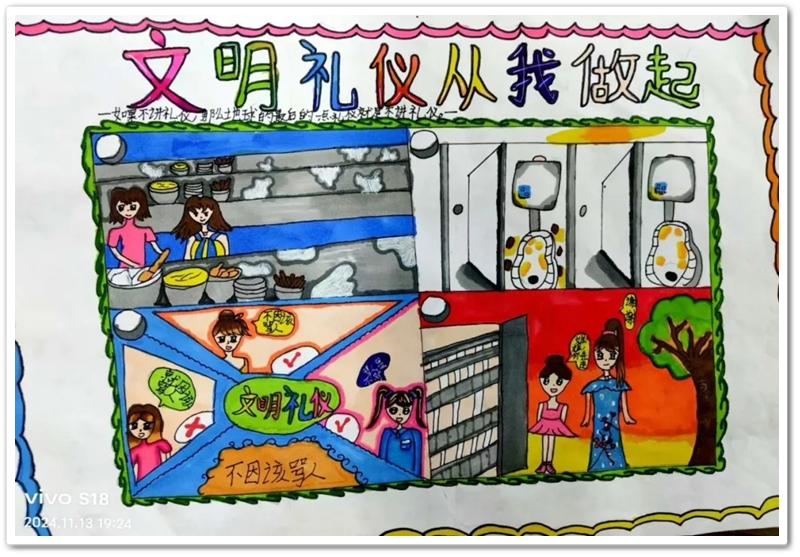 文明礼仪似璀璨繁星,照亮校园的每一个角落。近日,正源小学部举办了一场别开生面的“文明礼仪伴我行”绘画比赛,为孩子们搭建了一个展现创意和对文明礼仪理解的绚丽舞台。