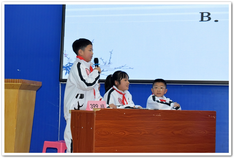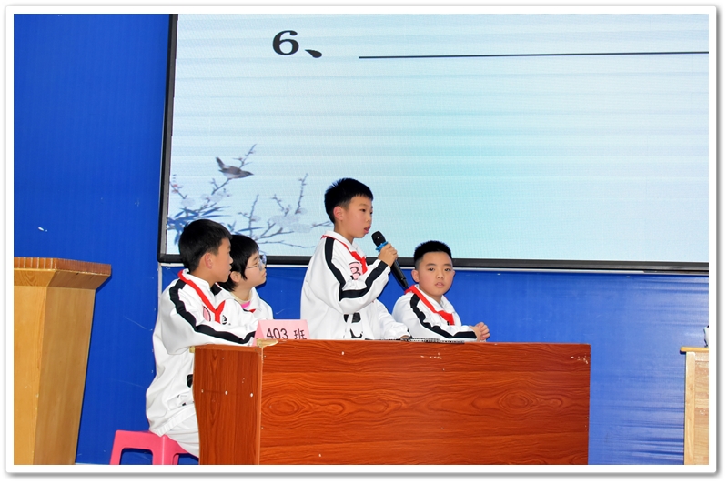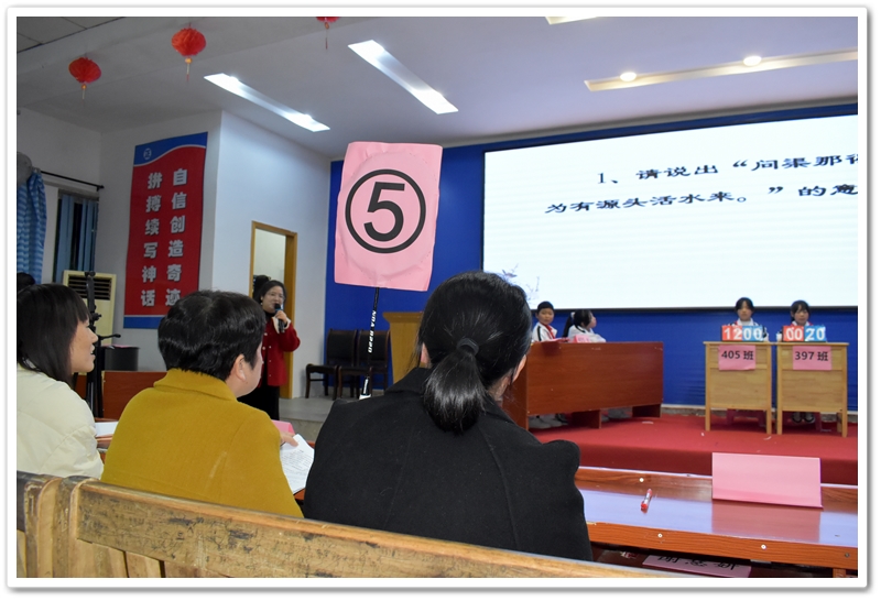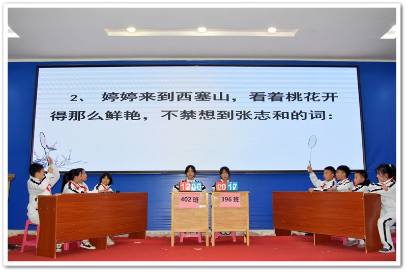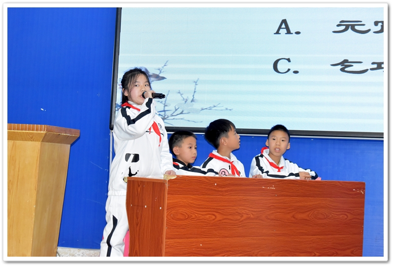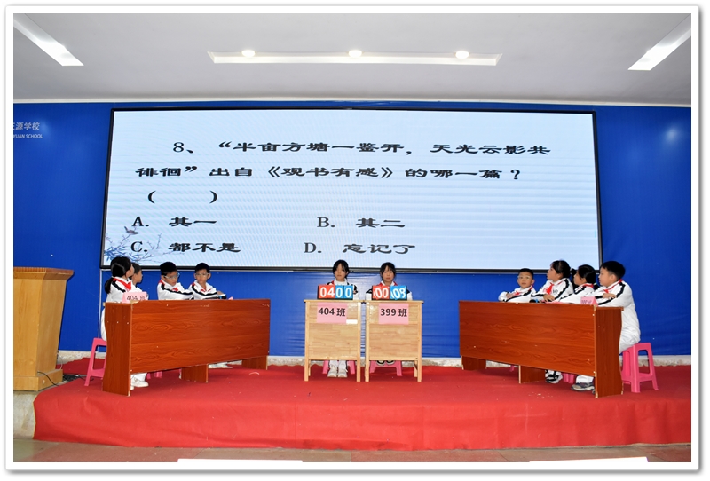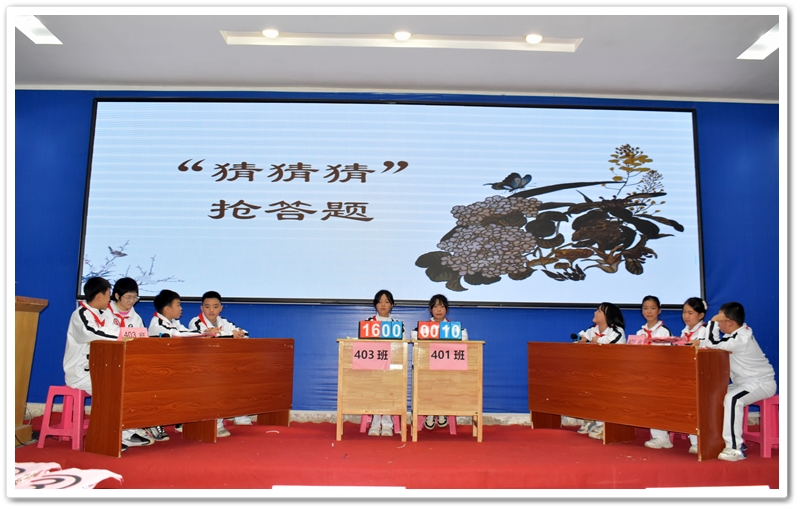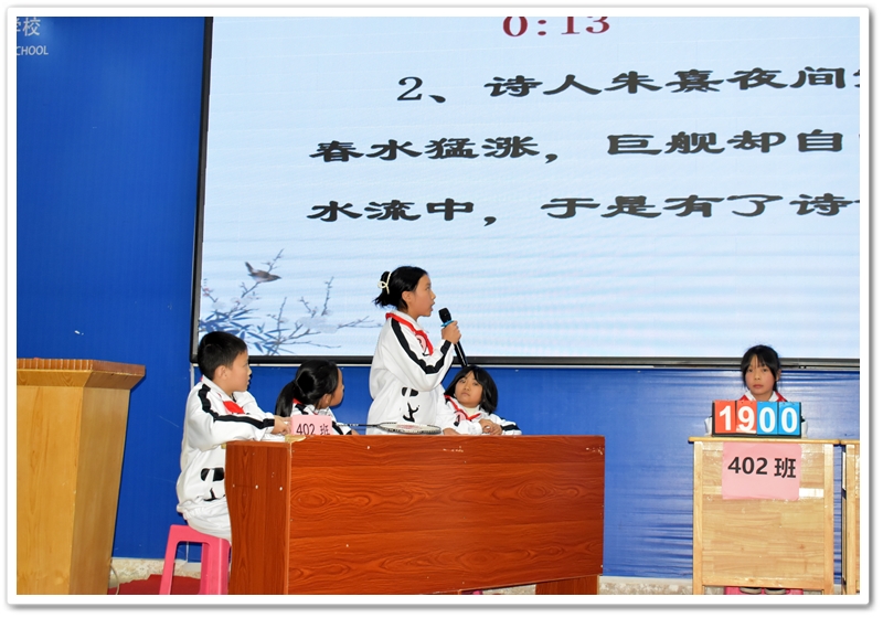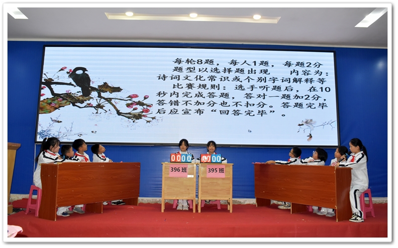 11月21日夜晚,报告厅内华灯初上,人头攒动,诗词大赛在此盛大启幕。赛事分为四轮,涵盖必答题、对对碰、猜猜猜及翻译题,每一环节都高潮迭起,令人屏息。各班精选的四位选手,代表班级出征,他们神采奕奕,意气风发,尽显五年级学子之英姿。