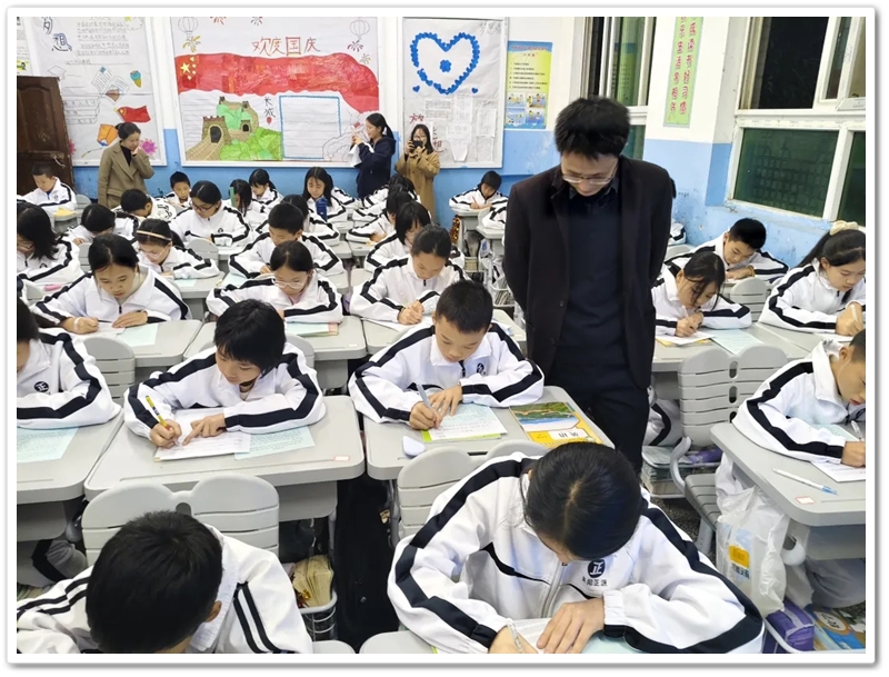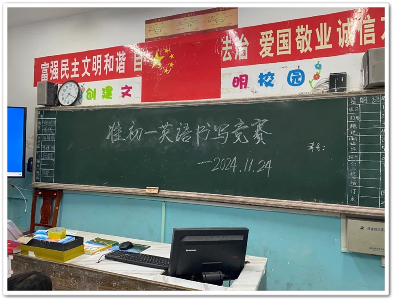 “首先,我谨代表年级,对精心策划本次竞赛活动付出辛勤劳动的英语组全体成员表示衷心的感谢!对获得嘉奖的同学表示热烈的祝贺!当今社会,英语作为一种全球通用语言,具有极为重要的地位,而英语书写能力,作为英语学习的重要组成部分,更是至关重要。本次英语竞赛,大家所呈现出来的一幅幅优秀作品,犹如字帖般规范、俊美。这充分说明了同学们在进入准初一年级之后的这段时间,在英语学习方面的重大收获,尤其彰显了大家优良的英语书写水平。希望大家再接再厉、持之以恒。我相信,有了良好的书写基础,大家未来的英语学习之路定会畅通无阻,奔向辉煌!”