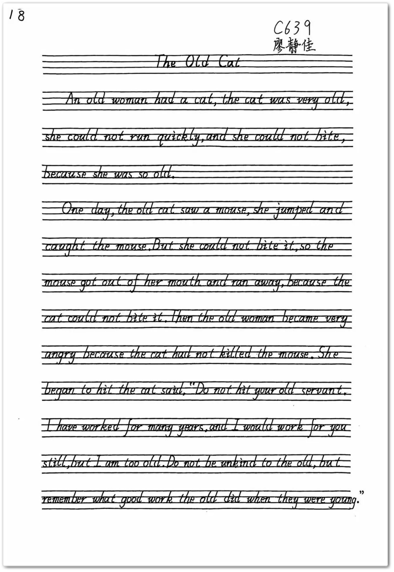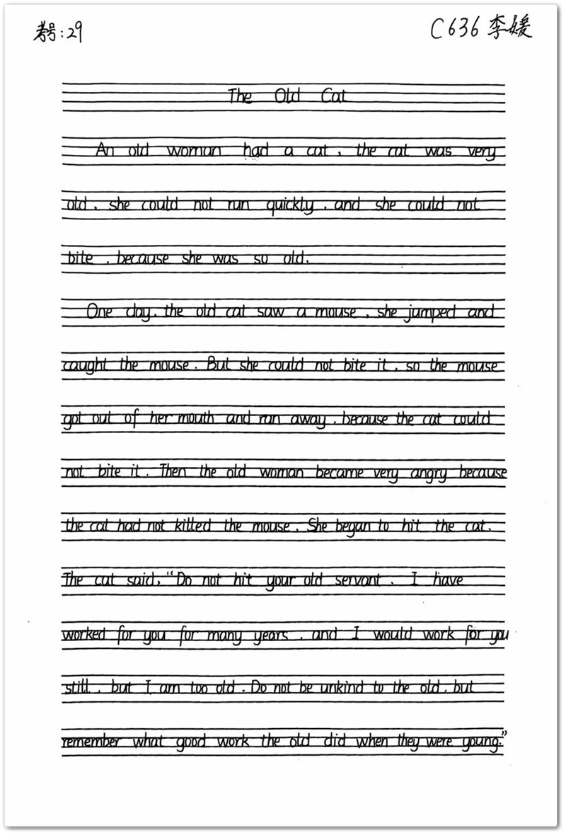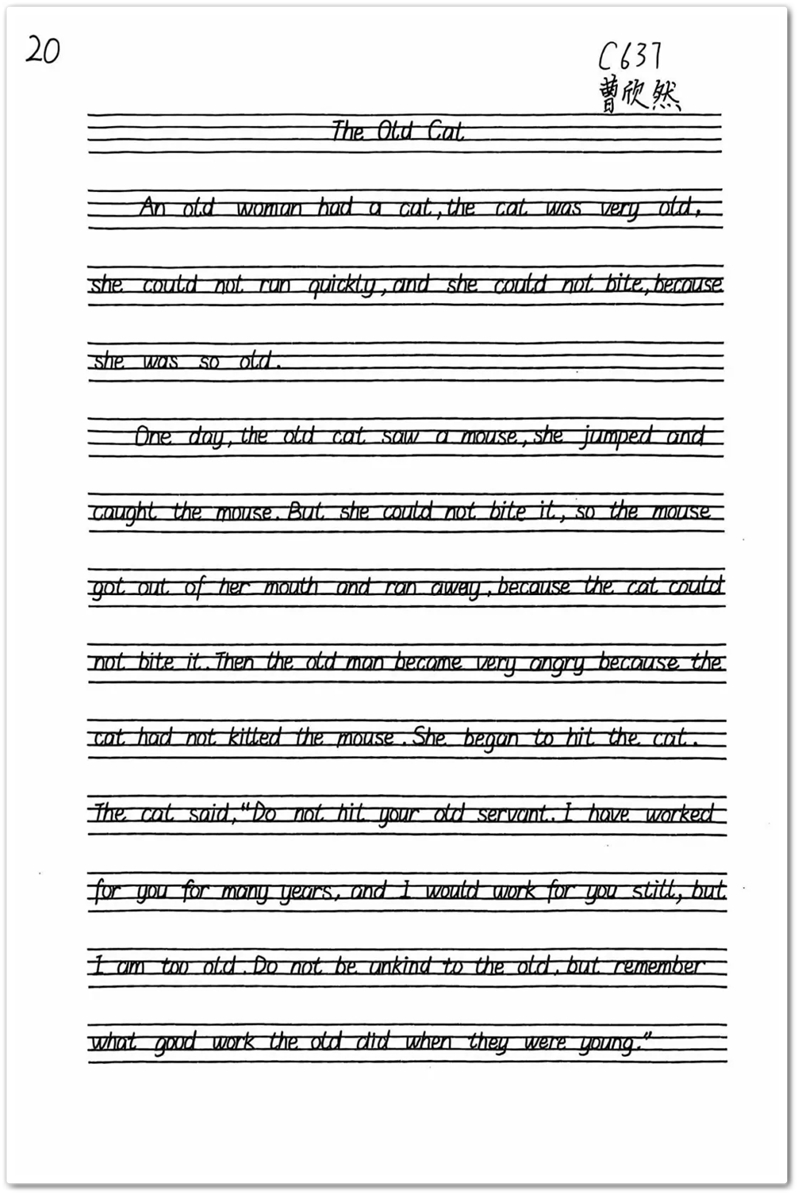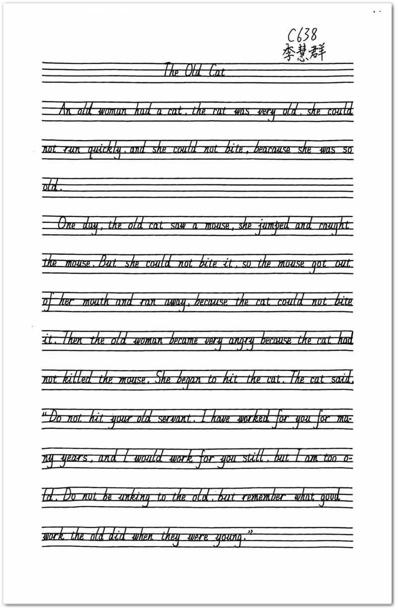 正确的英文书写是英语学习的最基本要求。良好的书写习惯不仅有助于提高学生的书写水平,培养学生的毅力、恒心和审美意识,一手好的英文字体还能对成绩产生积极影响。