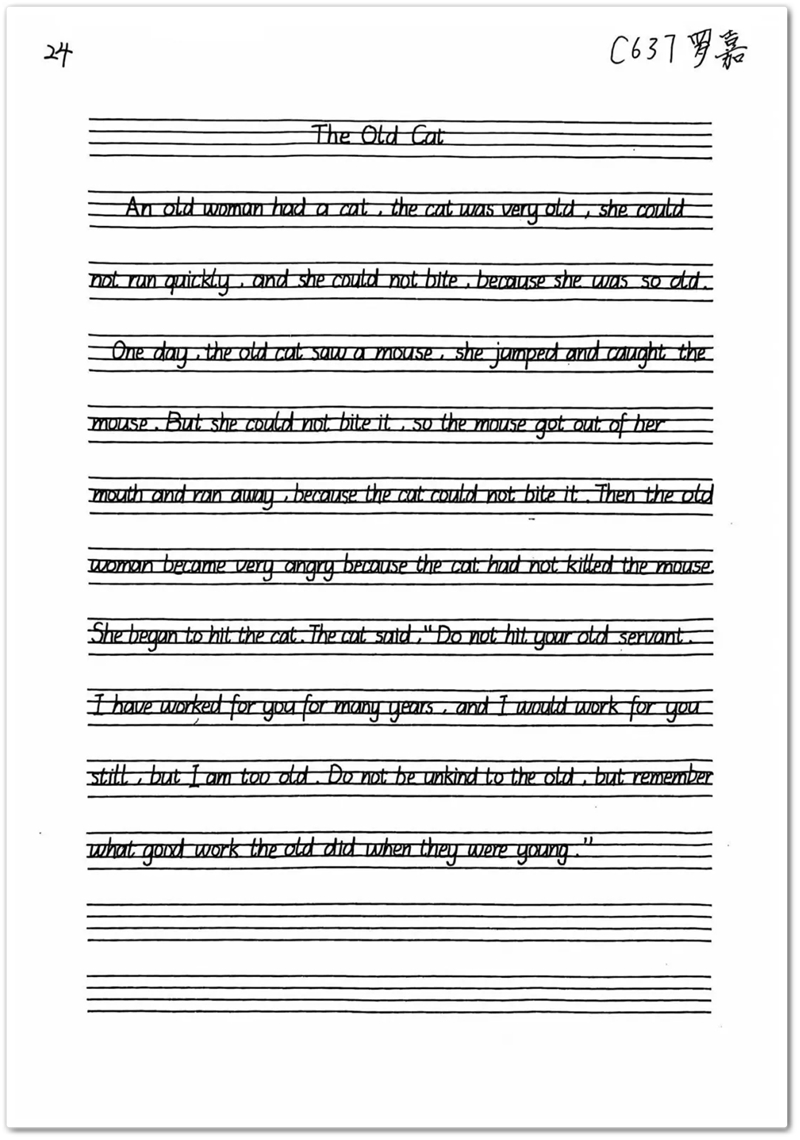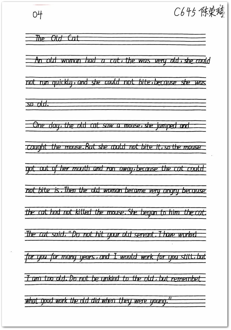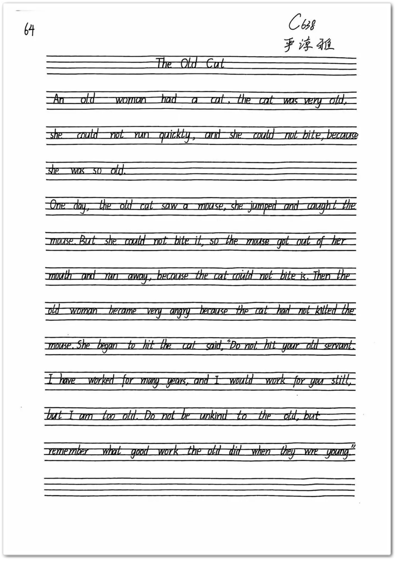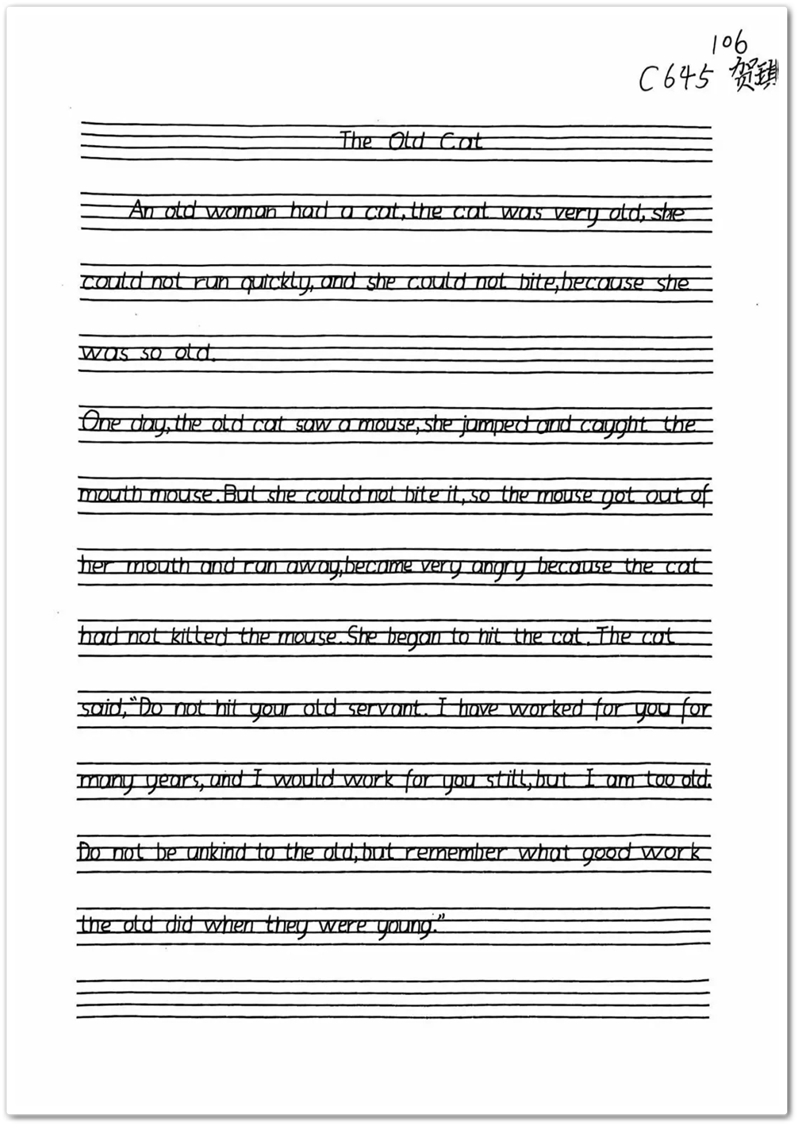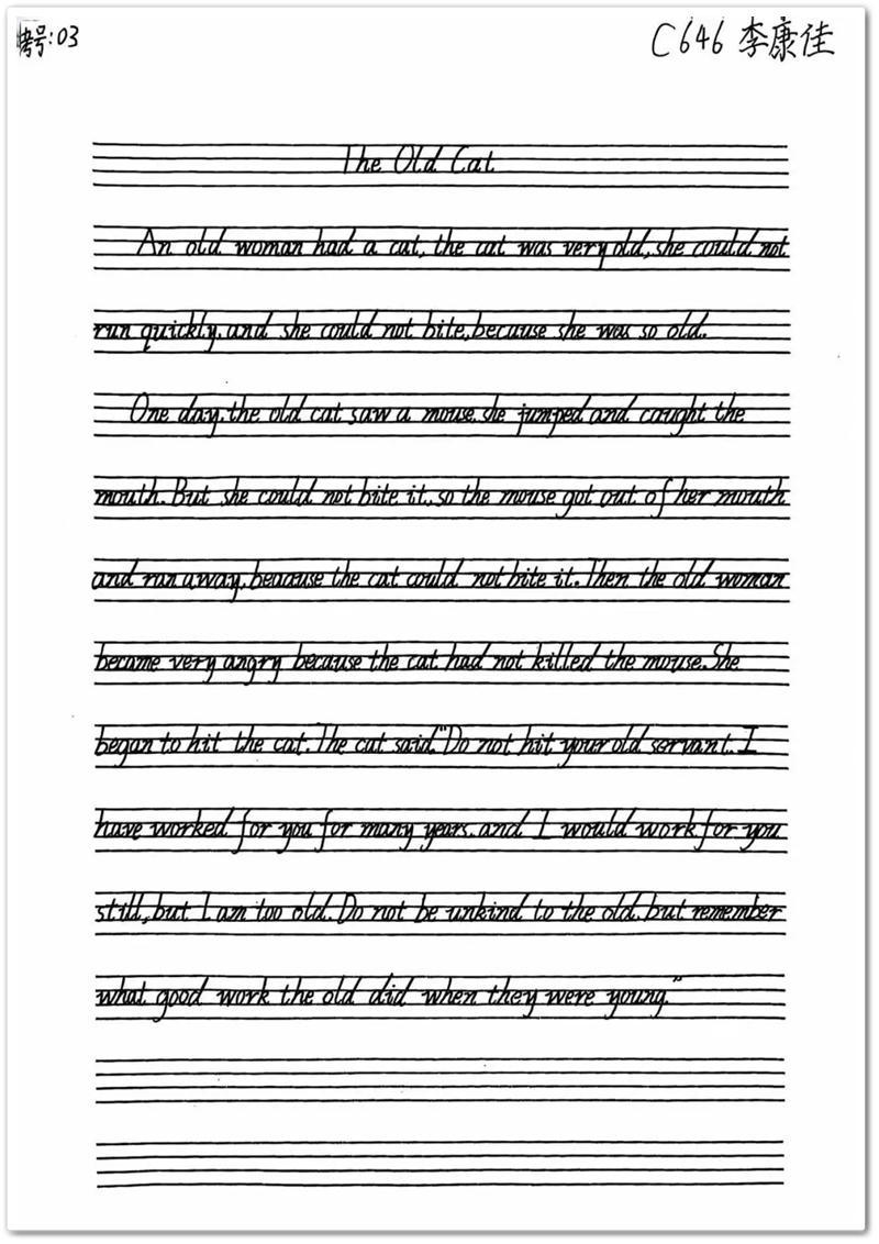 正确的英文书写是英语学习的最基本要求。良好的书写习惯不仅有助于提高学生的书写水平,培养学生的毅力、恒心和审美意识,一手好的英文字体还能对成绩产生积极影响。
